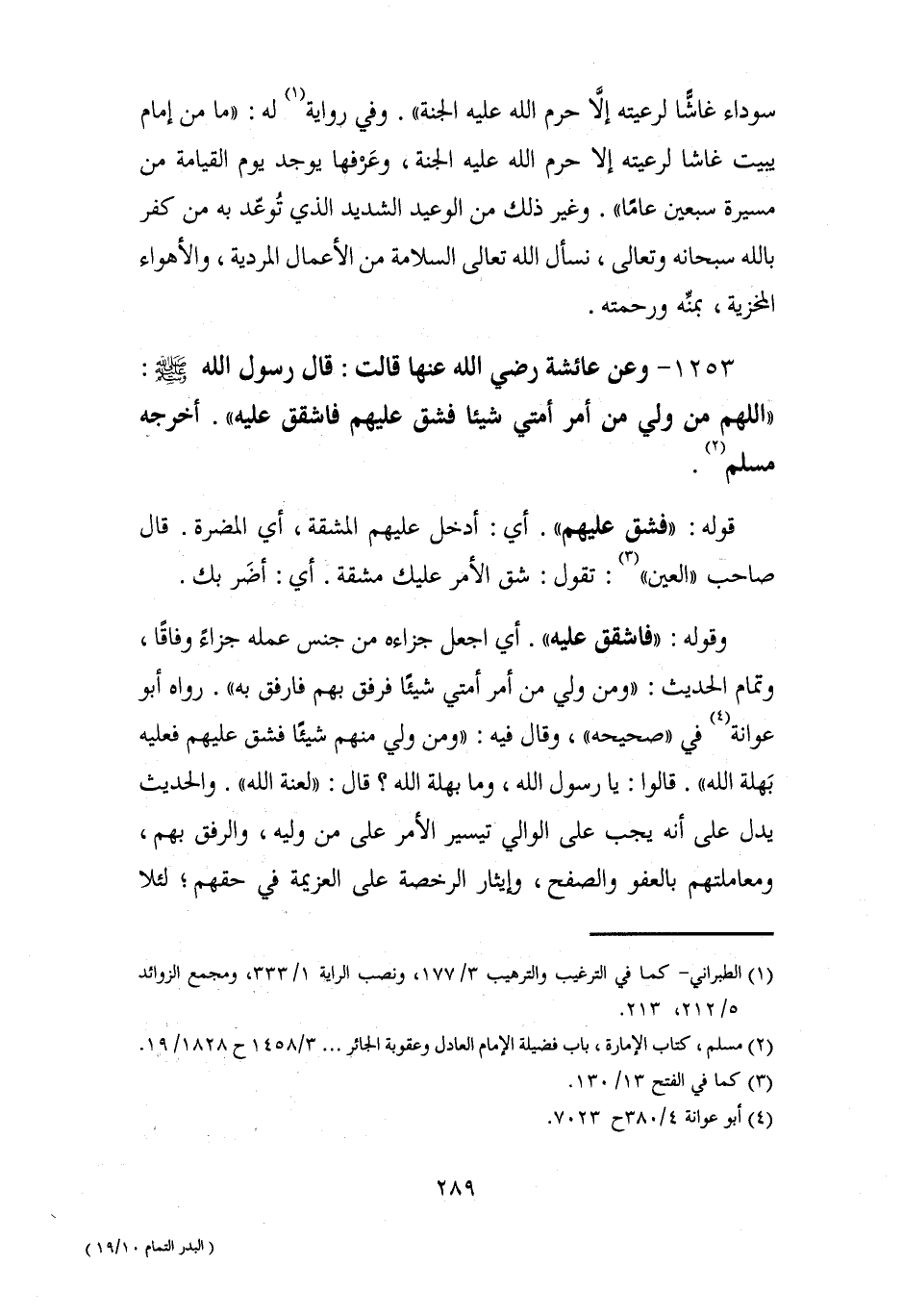(¬2) مسلم، كتاب الإِمارة، باب فضيلة الإمام العادل وعقوبة الجائر. . . 3/ 1458 ح 1828/ 19.