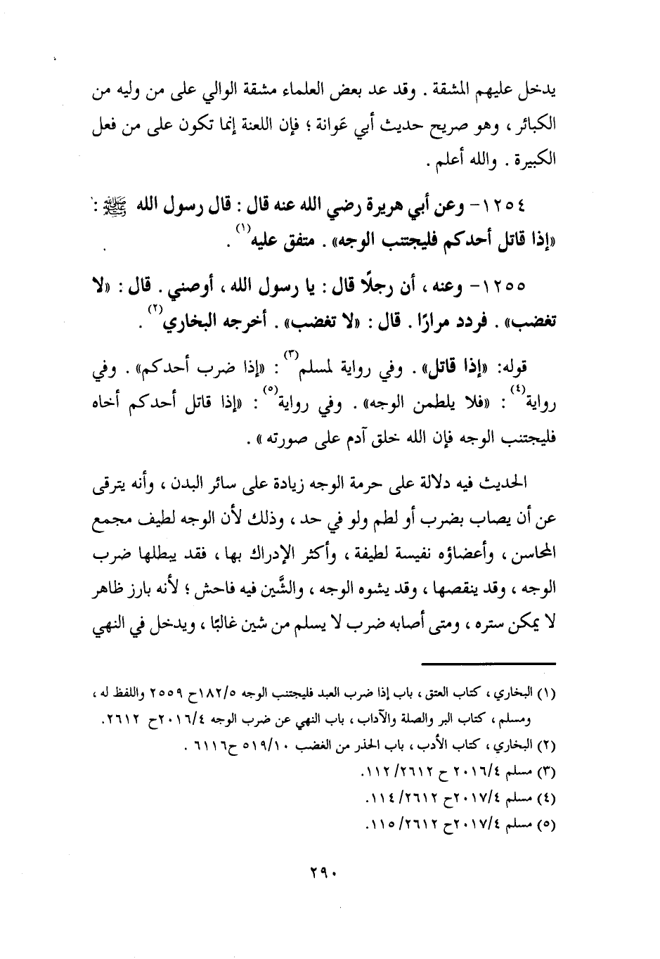 1254 - وعن أبي هريرة رضي الله عنه قال: قال رسول الله - صلى الله عليه وسلم -: "إذا قاتل أحدكم فليجتنب الوجه". متفق عليه (¬1).