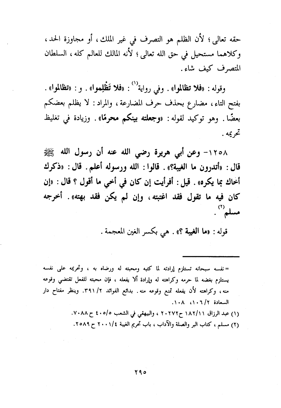 (¬2) مسلم، كتاب البر والصلة والآداب، باب تحريم الغيبة 4/ 2001 ح 2589.