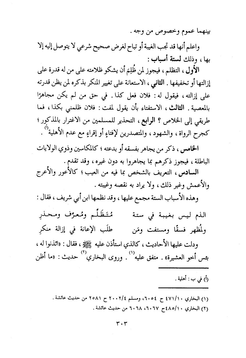 الذم ليس بغيبة في ستة ... مُتَظَلِّم ومُعرِّف ومحذرِ