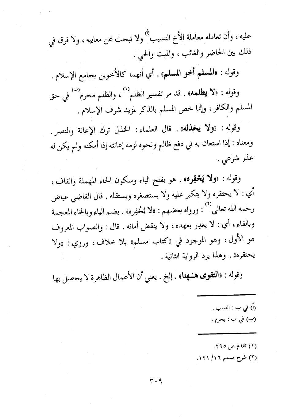عليه، وأن تعامله معاملة الأخ النسيب (أ) ولا تبحث عن معايبه، ولا فرق في ذلك بين الحاضر والغائب، والميت والحي.