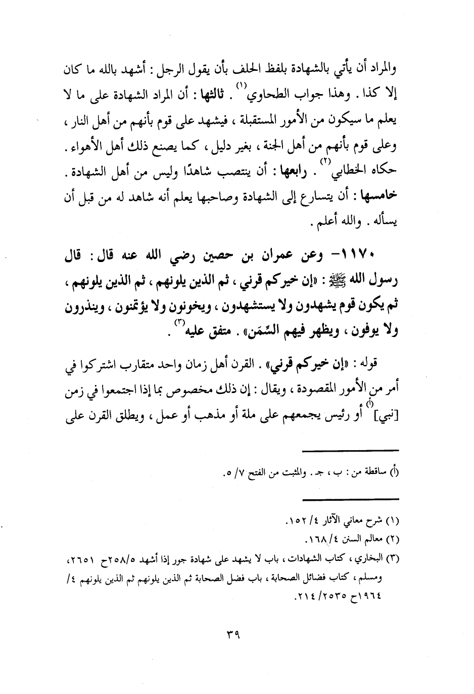 (¬3) البخاري، كتاب الشهادات، باب لا يشهد على شهادة جور إذا أشهد 5/ 258 ح 2651، ومسلم، كتاب فضائل الصحابة, باب فضل الصحابة ثم الذين يلونهم ثم الذين يلونهم 4/ 1964 ح 2535/ 214.