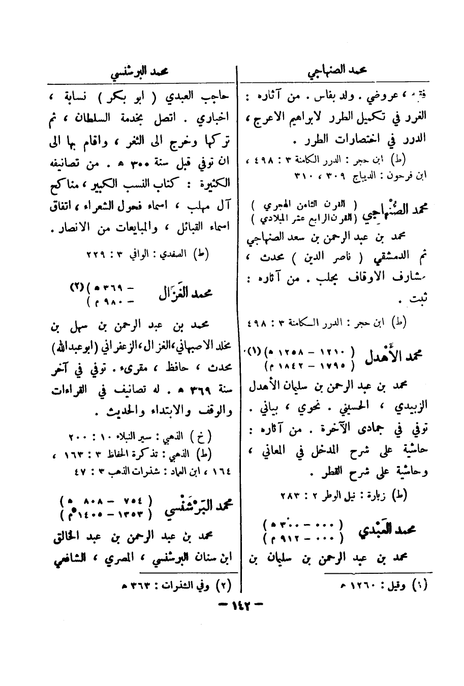 (ط) الذهبي: تذكرة الحفاظ 3: 163، 164، ابن العماد: شذرات الذهب 3: 47 محمد البرشنسي (754 - 808 هـ) (1353 - 1405 م) محمد بن عبد الرحمن بن عبد الخالق ابن سنان البرشنسي، المصري، الشافعي