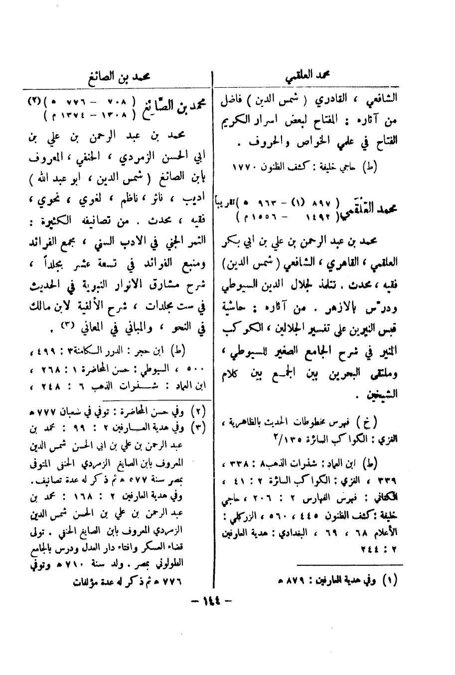 (ط) حاجي خليفة: كشف الظنون 1770 محمد العلقمي (897 (1) - 963 هـ) تقريبا (1492 - 1556 م) محمد بن عبد الرحمن بن علي بن ابي بكر العلقمي، القاهري، الشافعي (شمس الدين) فقيه، محدث.