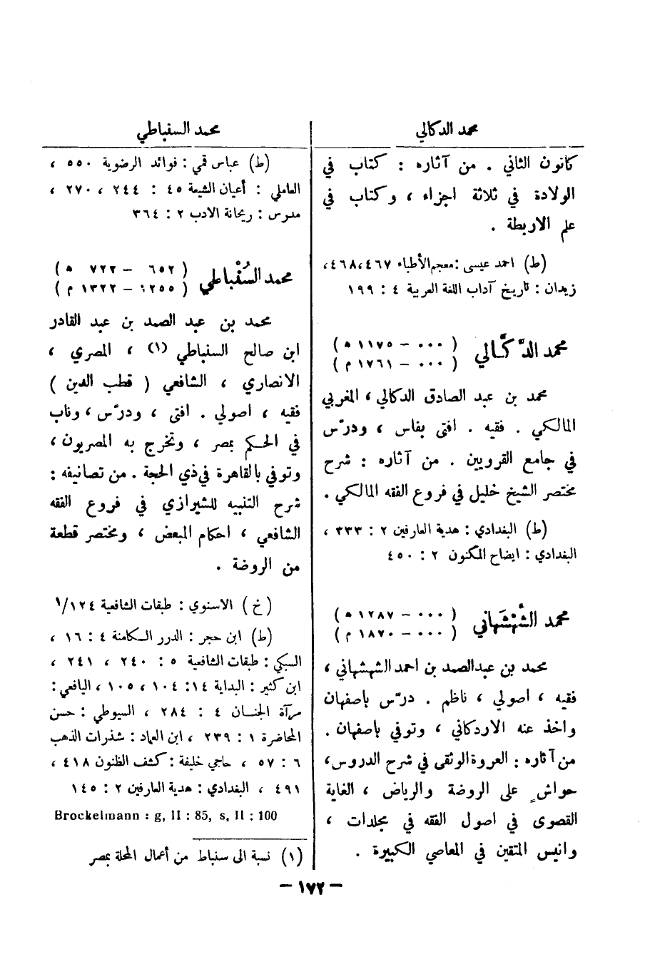 (ط) احمد عيسى: معجم الاطباء 467، 468، زيدان: تاريخ آداب اللغة العربية 4: 199 محمد الدكالي (000 - 1175 هـ) (000 - 1761 م) محمد بن عبد الصادق الدكالي، المغربي
