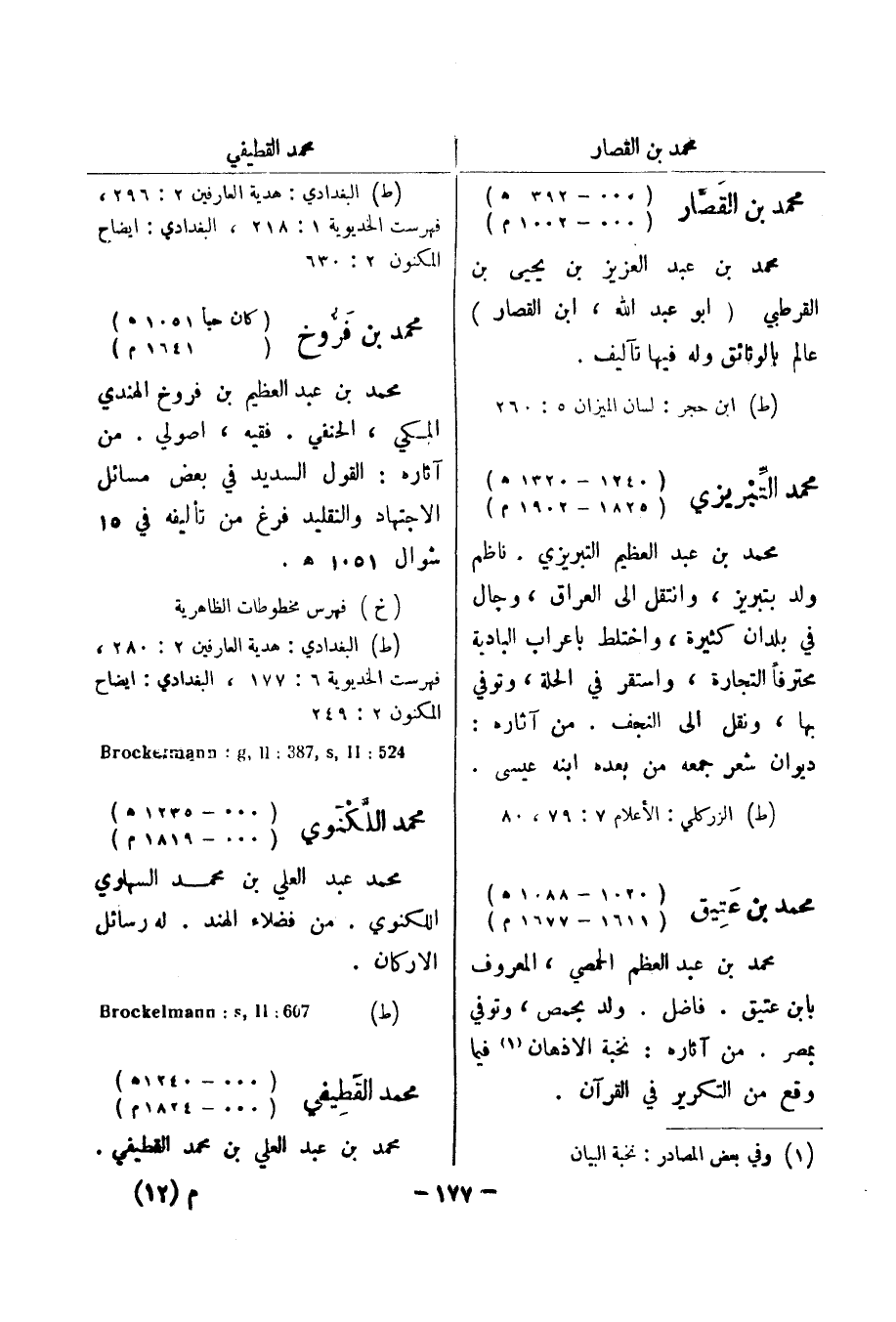 (ط) 607: Brockelmann: s , ll محمد القطيفي (000 - 1240 هـ) (000 - 1824 م) محمد بن عبد العلي بن محمد القطيفي.