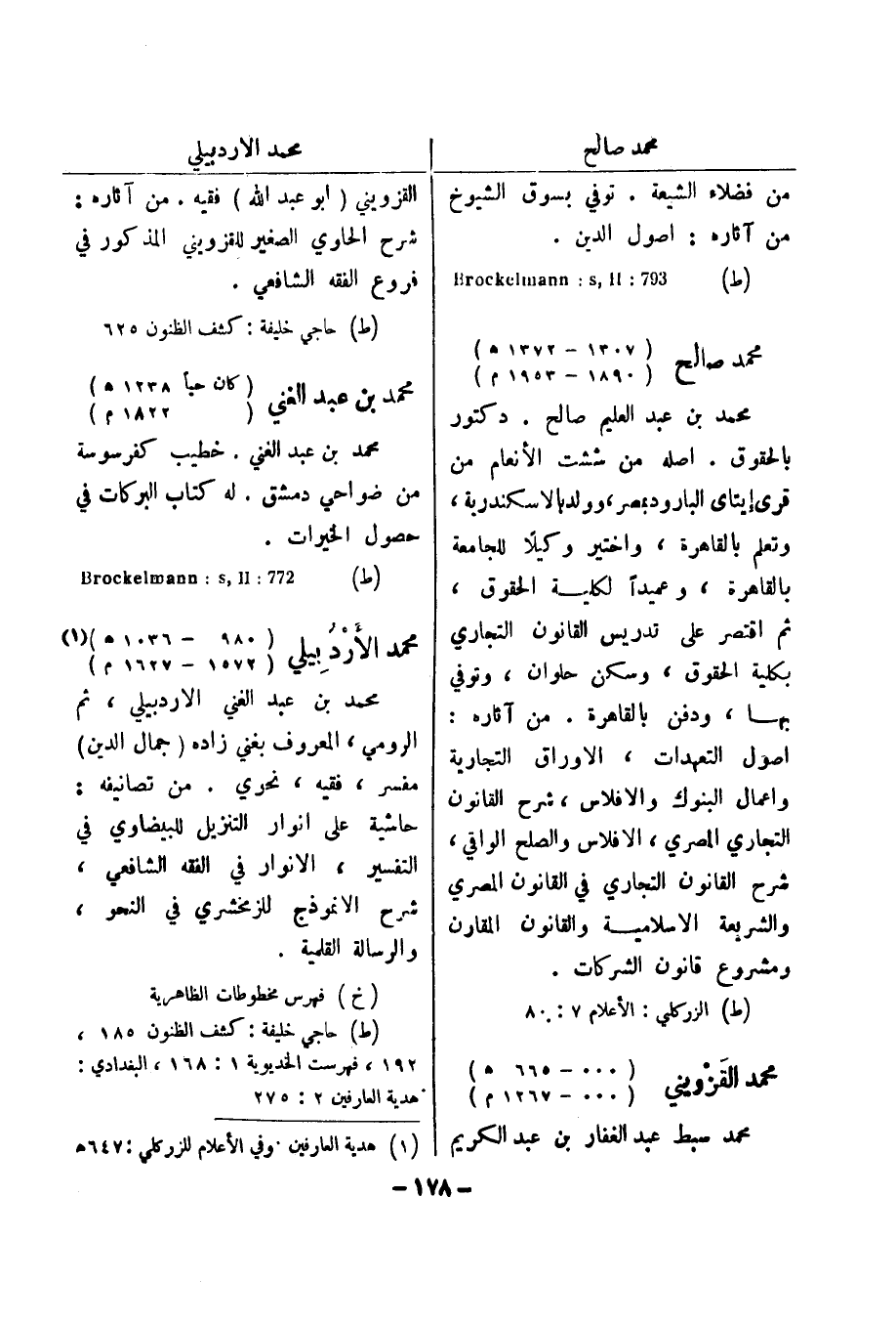 (ط) 793: Brockelmann: s , ll محمد صالح (1307 - 1372 هـ) (1890 - 1953 م) محمد بن عبد العليم صالح.