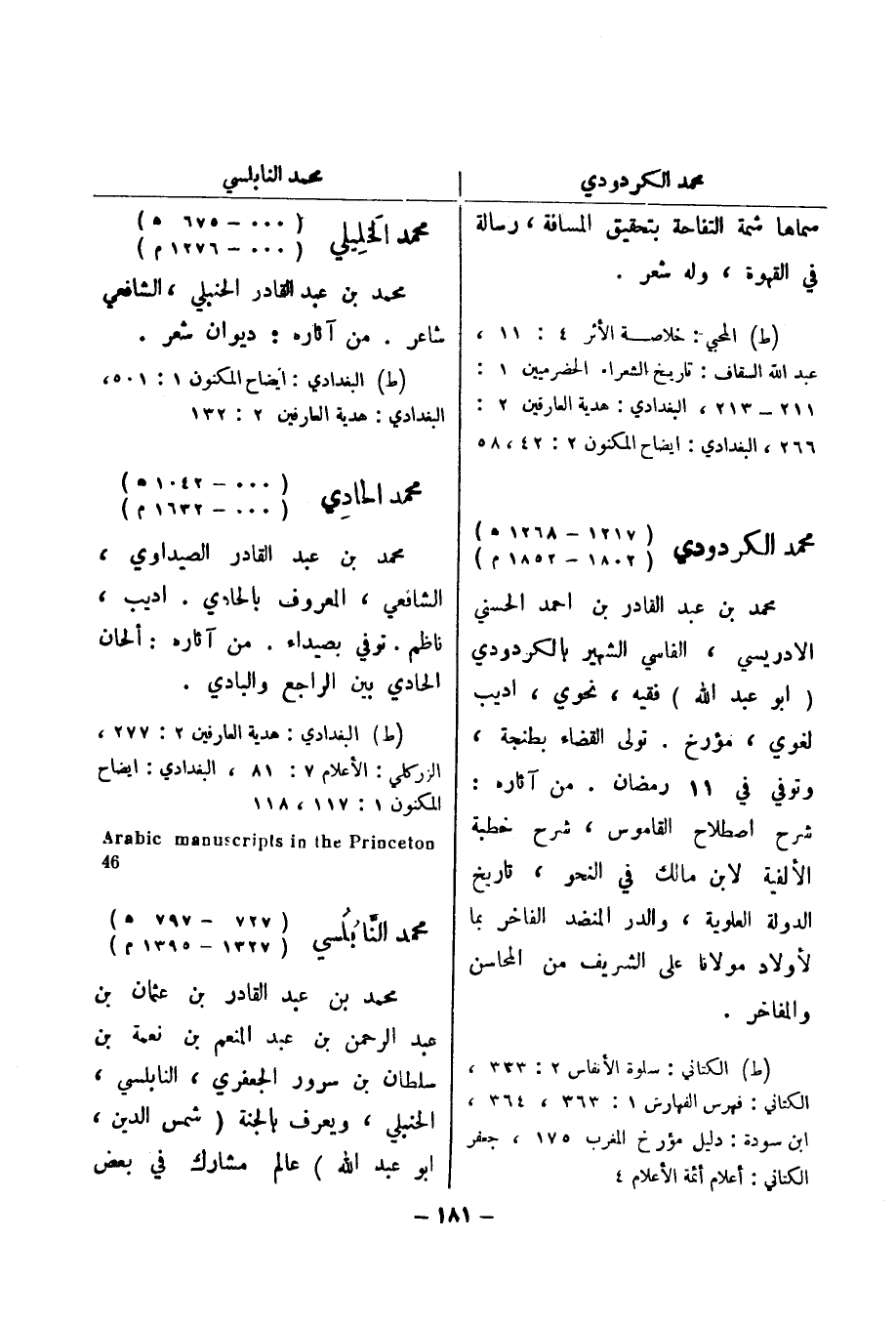 الزركلي: الاعلام 7: 81، البغدادي: ايضاح المكنون 1: 117، 118 Arabic manuscripts in the princeton 46.