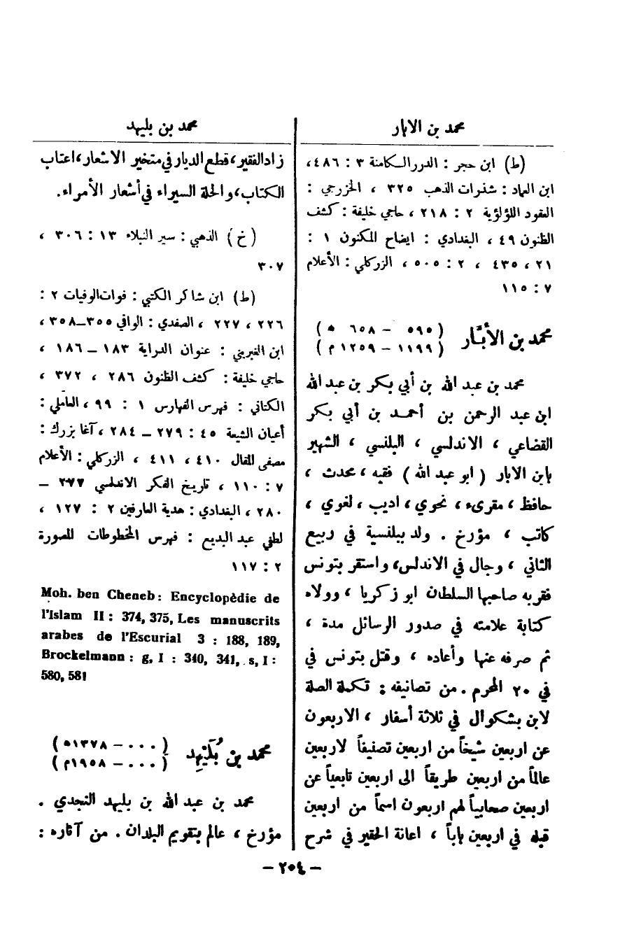 (ط) ابن شاكر الكتبي: فوات الوفيات 2: 226، 227، الصفدي: الوافي 355 - 358، ابن الغبربني: عنوان الدراية 183 - 186، حاجي خليفة: كشف الظنون 286، 372، الكتاني: فهرس الفهارس 1: 99، العاملي: أعيان الشيعة 45: 279 - 284، آغا بزرك: مصفى المقال 410، 411، الزركلي: الاعلام 7: 110، تاريخ الفكر الاندلسي 277 - 280، البغدادي: هدية العارفين 2: 127، لطفي عبد البديع: فهرس المخطوطات المصورة 2: 117 Moh ben cheneb: Encyclopedie de l ' lslam ll: 473 , 573 , Les manuscrits , 189 , 188: 3 arabes de l ' Escurial: Brockelmann: g , l: 043 , 143 , s , l 581 , 580 محمد بن بليهد (000 - 1378 هـ) (000 - 1958 م)