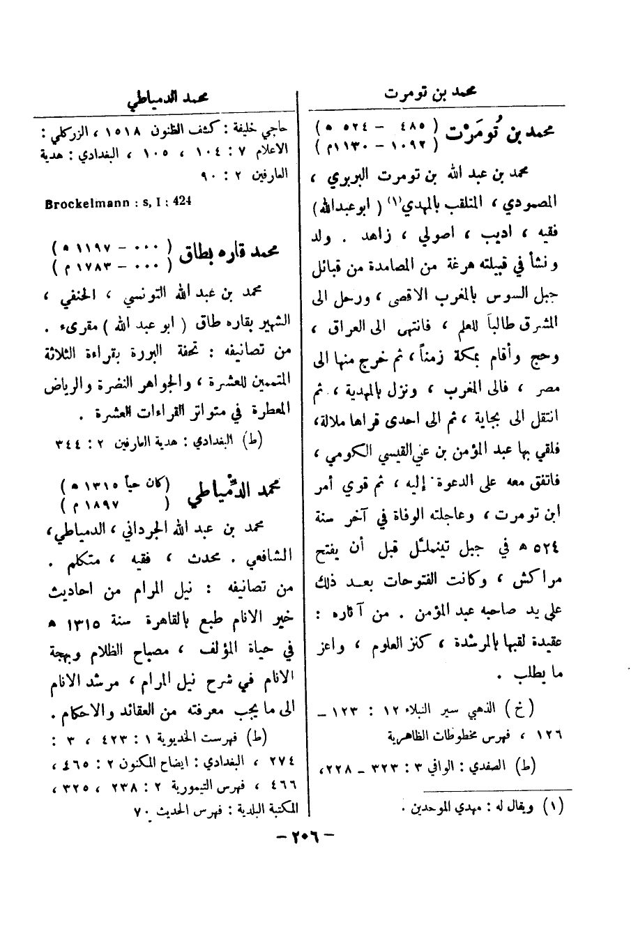 (ط) البغدادي: هدية العارفين 2: 344 محمد الدمياطي (كان حيا 1315 هـ) (1897 م)