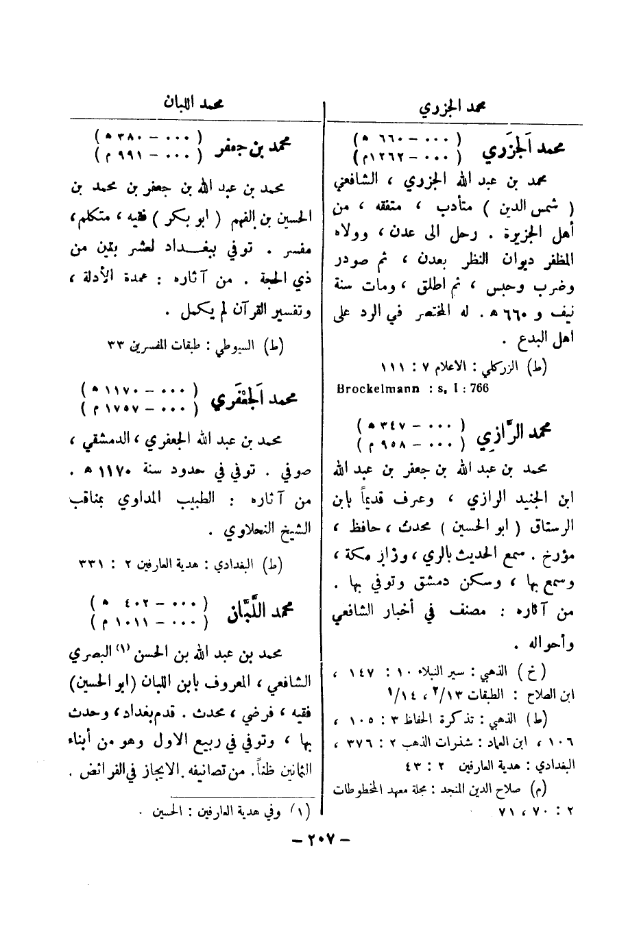 (ط) البغدادي: هدية العارفين 2: 331، محمد اللبان (000 - 402 هـ) (000 - 1011 م) محمد بن عبد الله بن الحسن (1) البصري الشافعي، المعروف بابن اللبان (أبو الحسين) فقيه، فرضي، محدث.