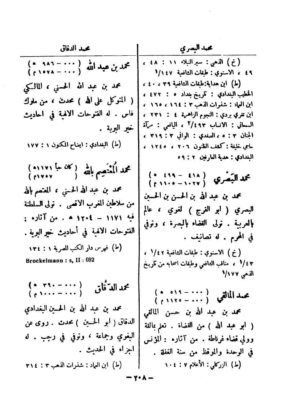 (ط) فهرس دار الكتب المصرية 1: 134 692: Brockelmann: s , ll محمد الدقاق (000 - 390 هـ) (000 - 1000 م) محمد بن عبد الله بن الحسين البغدادي الدقاق (أبو الحسين) محدث.