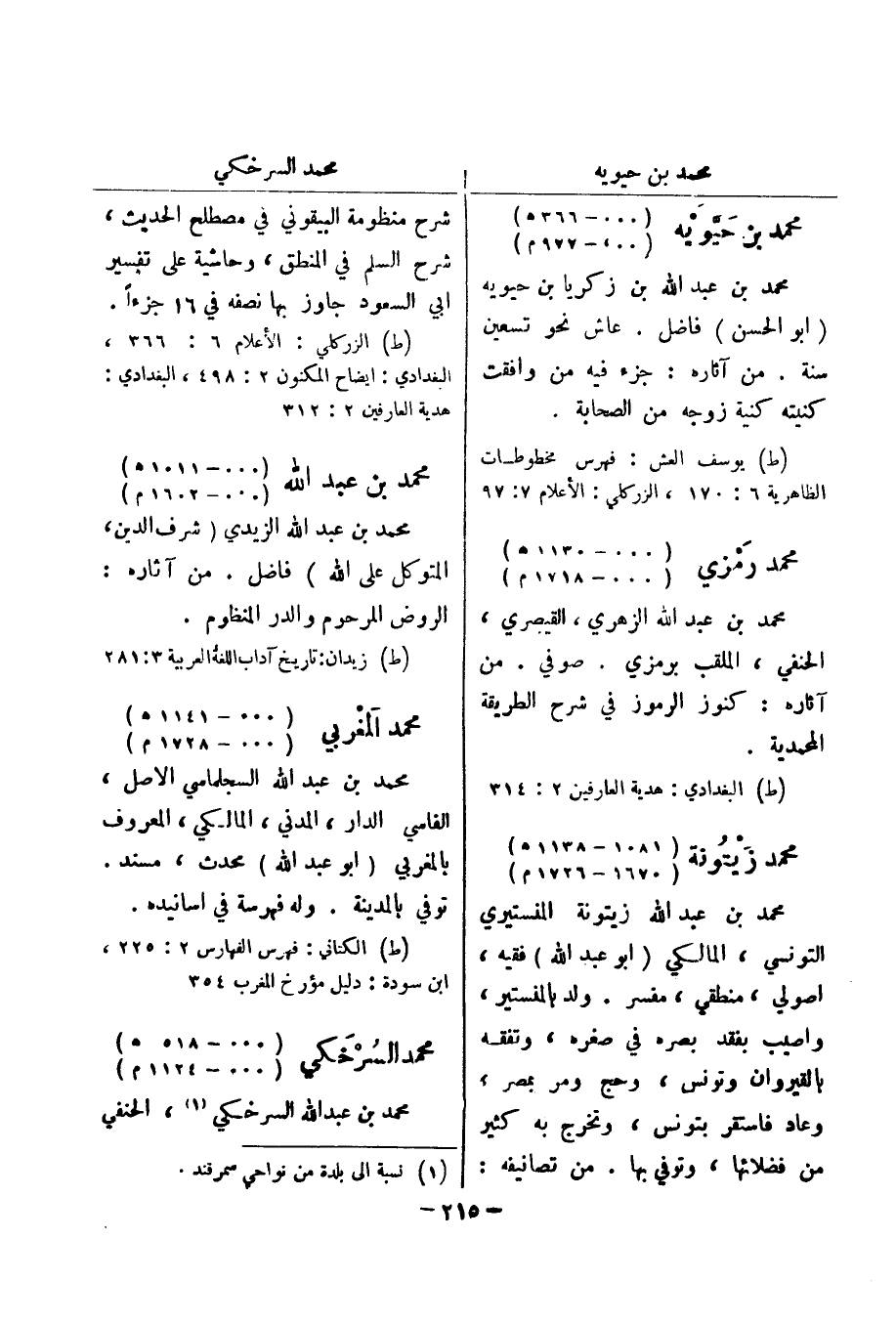 (ط) البغدادي: هدية العارفين 2: 314 محمد زيتونة (1081 - 1138 هـ) (1670 - 1726 م) محمد بن عبد الله زيتونة المنستيري التونسي، المالكي (أبو عبد الله) فقيه،