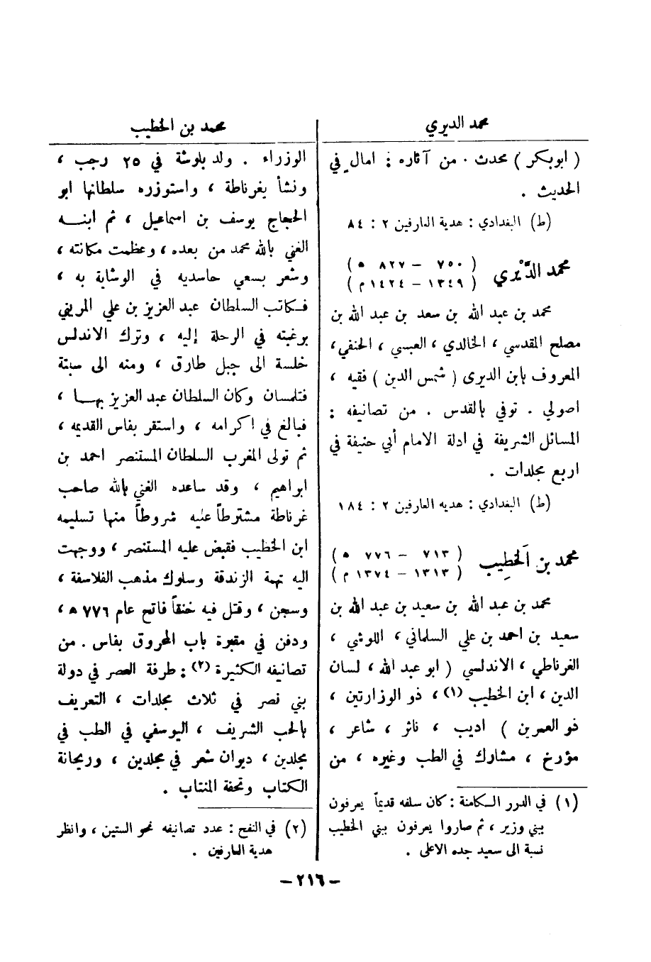 (ط) البغدادي: هدية العارفين 2: 184 محمد بن الخطيب (713 - 776 هـ) (1313 - 1374 م)