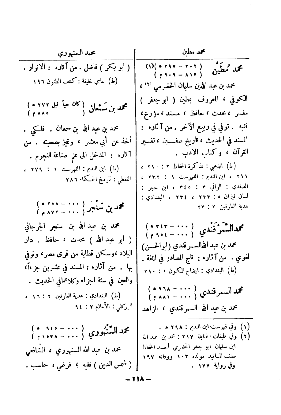 (ط) حاجي خليفة: كشف الظنون 196 محمد بن سمعان (كان حيا قبل 272 هـ) (885 م) محمد بن عبد الله بن سمعان.