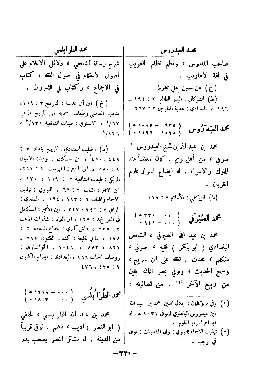 (خ) عن حسين علي محفوظ (ط) الشوكاني: البدر الطالع 2: 194 - 196، البغدادي: هدية العارفين 2: 267 محمد العيدروس (935 - 1005 هـ) (1528 - 1596 م) محمد بن عبد الله بن شيخ العيدروس (1) صوفي، من أهل تريم.