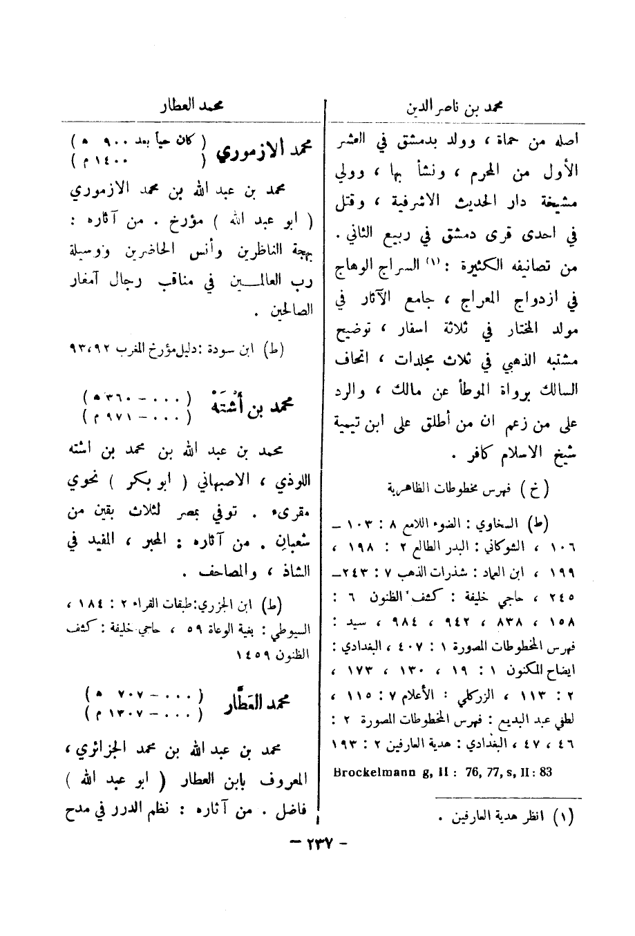 (ط) ابن الجزري: طبقات القراء 2: 184، السيوطي: بغية الوعاة 59، حاجي خليفة: كشف الظنون 1459 محمد العطار (000 - 707 هـ) (000 - 1307 م) محمد بن عبد الله بن محمد الجزائري، المعروف بابن العطار (أبو عبد الله)