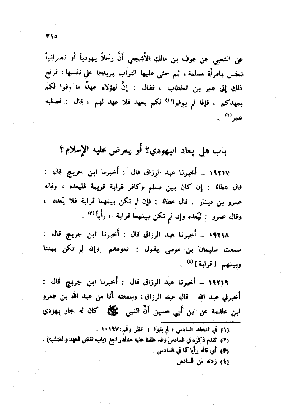 ١٩٢١٨ - عَبْدُ الرَّزَّاقِ، أَخْبَرَنَا ابْنُ جُرَيْجٍ , قَالَ: سَمِعْتُ سُلَيْمَانَ بْنَ مُوسَى , يَقُولُ: «نَعُودُهُمْ وَإِنْ لَمْ تَكُنْ بَيْنَنَا وَبَيْنَهُمْ قَرَابَةٌ»
