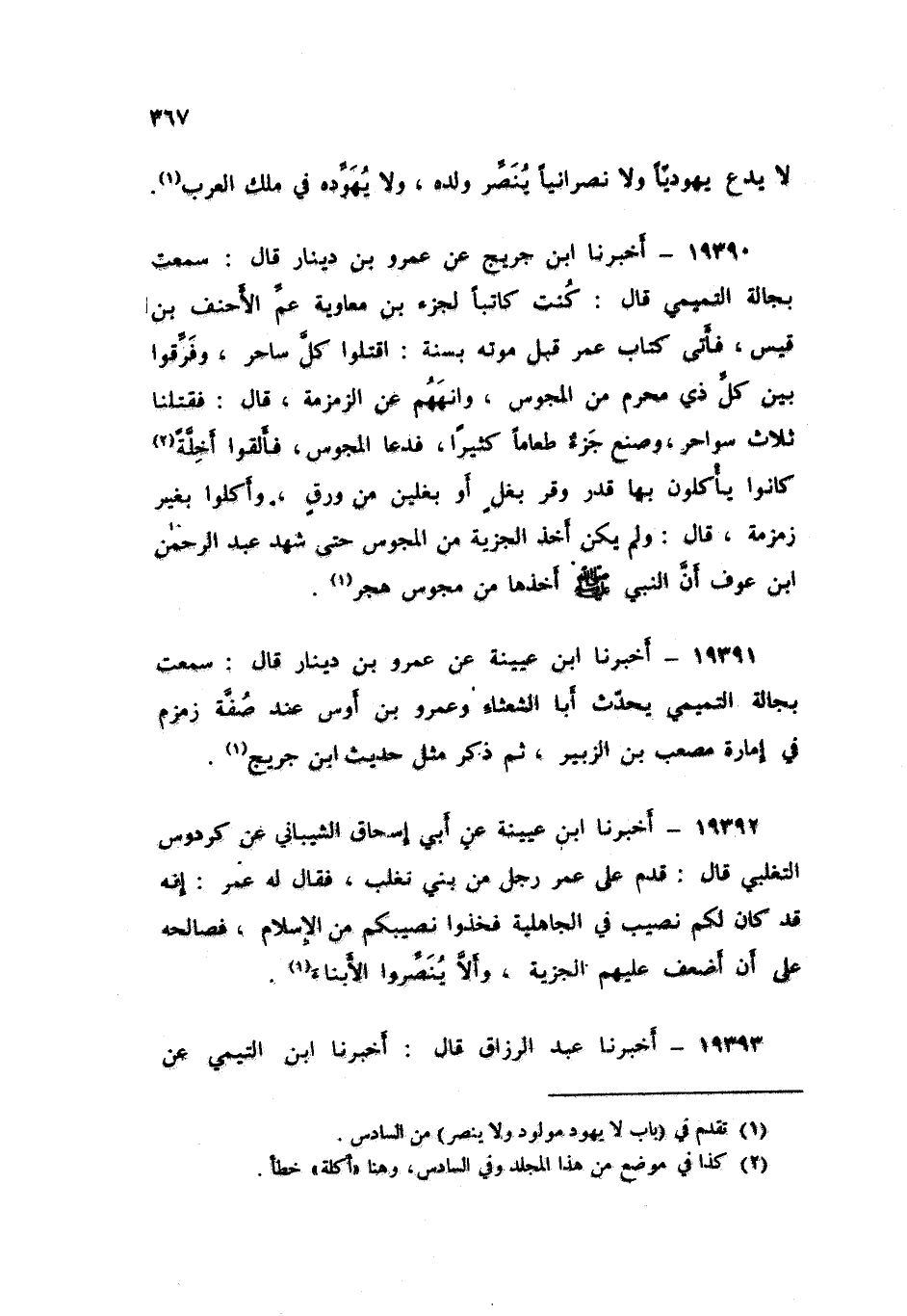 قَالَ: وَلَمْ يَكُنْ أَخَذَ الْجِزْيَةَ مِنَ الْمَجُوسِ حَتَّى شَهِدَ عَبْدُ الرَّحْمَنِ بْنُ عَوْفٍ: «أَنَّ النَّبِيَّ صَلَّى اللهُ عَلَيْهِ وَسَلَّمَ أَخَذَهَا مِنْ مَجُوسِ هَجَرَ»