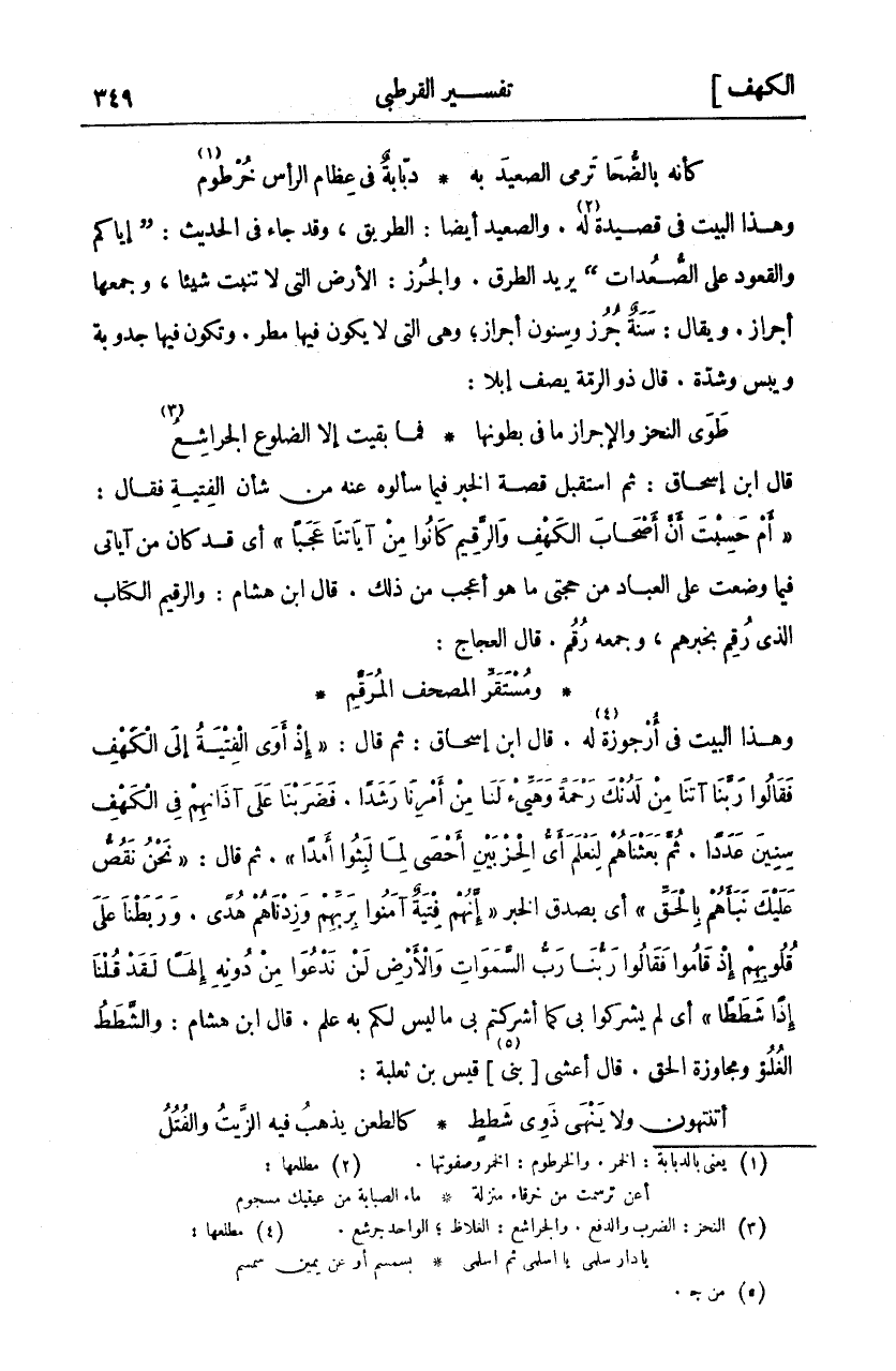 وَهَذَا الْبَيْتُ فِي أُرْجُوزَةٍ لَهُ «٤». قَالَ ابْنُ إِسْحَاقَ: ثُمَّ قَالَ" إِذْ أَوَى الْفِتْيَةُ إِلَى الْكَهْفِ فَقالُوا رَبَّنا آتِنا مِنْ لَدُنْكَ رَحْمَةً وَهَيِّئْ لَنا مِنْ أَمْرِنا رَشَداً. فَضَرَبْنا عَلَى آذانِهِمْ فِي الْكَهْفِ سِنِينَ عَدَداً. ثُمَّ بَعَثْناهُمْ لِنَعْلَمَ أَيُّ الْحِزْبَيْنِ أَحْصى لِما لَبِثُوا أَمَداً". ثُمَّ قَالَ:" نَحْنُ نَقُصُّ عَلَيْكَ نَبَأَهُمْ بِالْحَقِّ" أَيْ بِصِدْقِ الْخَبَرِ" إِنَّهُمْ فِتْيَةٌ آمَنُوا بِرَبِّهِمْ وَزِدْناهُمْ هُدىً. وَرَبَطْنا عَلى قُلُوبِهِمْ إِذْ قامُوا فَقالُوا رَبُّنا رَبُّ السَّماواتِ وَالْأَرْضِ لَنْ نَدْعُوَا مِنْ دُونِهِ إِلهاً لَقَدْ قُلْنا إِذاً شَطَطاً" أَيْ لَمْ يُشْرِكُوا بِي كَمَا أَشْرَكْتُمْ بِي مَا لَيْسَ لَكُمْ بِهِ عِلْمٌ. قَالَ ابْنُ هِشَامٍ: وَالشَّطَطُ الْغُلُوُّ وَمُجَاوَزَةُ الْحَقِّ. قَالَ أَعْشَى [بنى «٥»] قَيْسِ بْنِ ثَعْلَبَةَ: