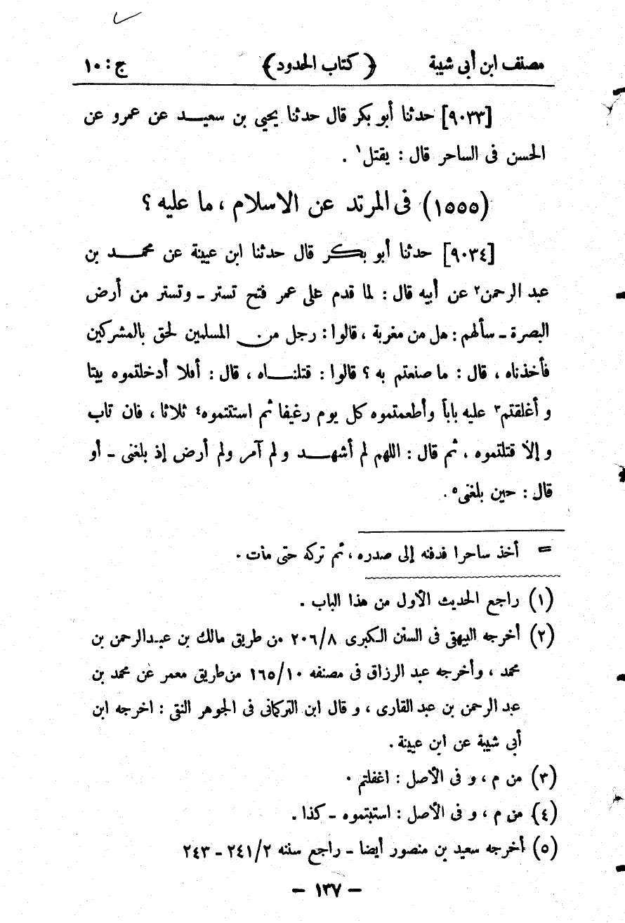 كتاب مصنف ابن أبي شيبة ط السلفية بالهند (اسم الجزء: 10)
