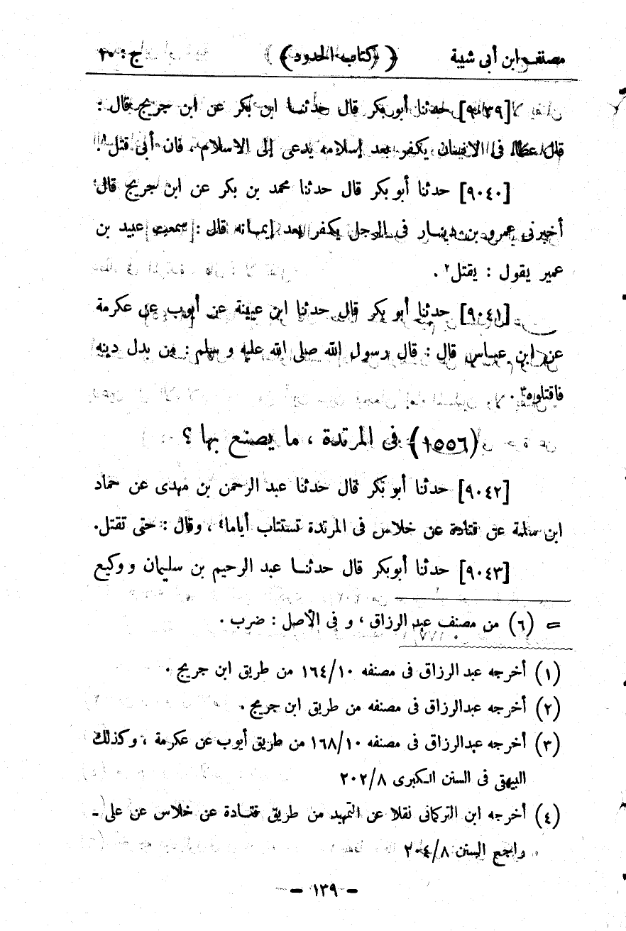 29597- حَدَّثَنَا ابْنُ عُيَيْنَةَ ، عَنْ أَيُّوبَ ، عَنْ عِكْرِمَةَ ، عَنِ ابْنِ عَبَّاسٍ ، قَالَ : قَالَ رَسُولُ اللهِ صلى الله عليه وسلم : مَنْ بَدَّلَ دِينَهُ فَاقْتُلُوهُ.