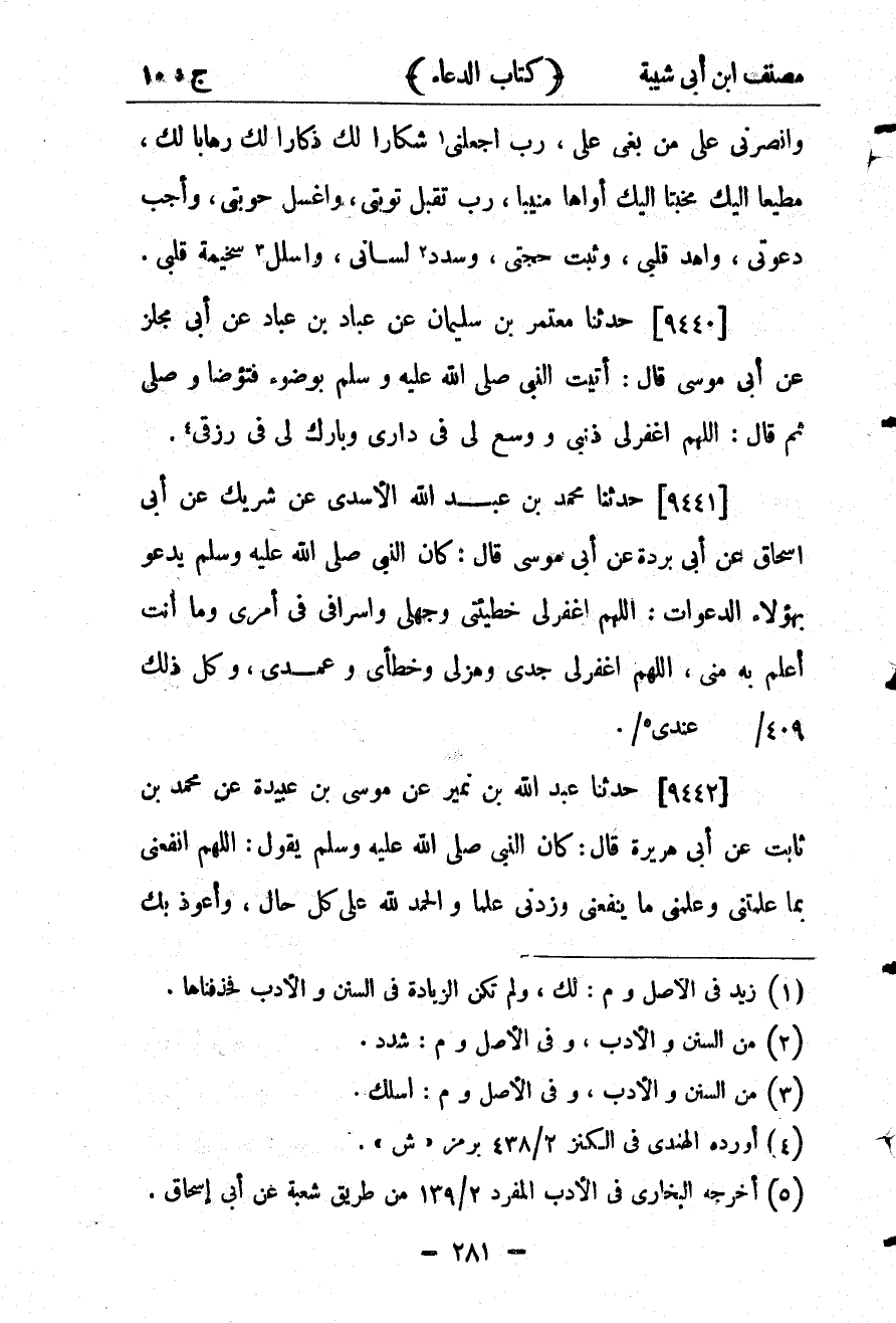 30005- حَدَّثَنَا مُحَمَّدُ بْنُ عَبْدِ اللهِ الأَسَدِيُّ ، عَن شَرِيكٍ ، عَنْ أَبِي إِسْحَاقَ ، عَنْ أَبِي بُرْدَةٍ ، عَنْ أَبِي مُوسَى قَالَ : كَانَ النَّبِيُّ صلى الله عليه وسلم يَدْعُو بِهَؤُلاءِ الدَّعَوَاتِ : اللَّهُمَّ اغْفِرْ لِي خَطِيئَتِي وَجَهْلِي وَإِسْرَافِي فِي أَمْرِي ، وَمَا أَنْتَ أَعْلَمُ بِهِ مِنِّي ، اللَّهُمَّ اغْفِرْ لِي جَدِّي وَهَزْلِي وَخَطَئِي وَعَمْدِي ، وَكُلُّ ذَلِكَ عِنْدِي.