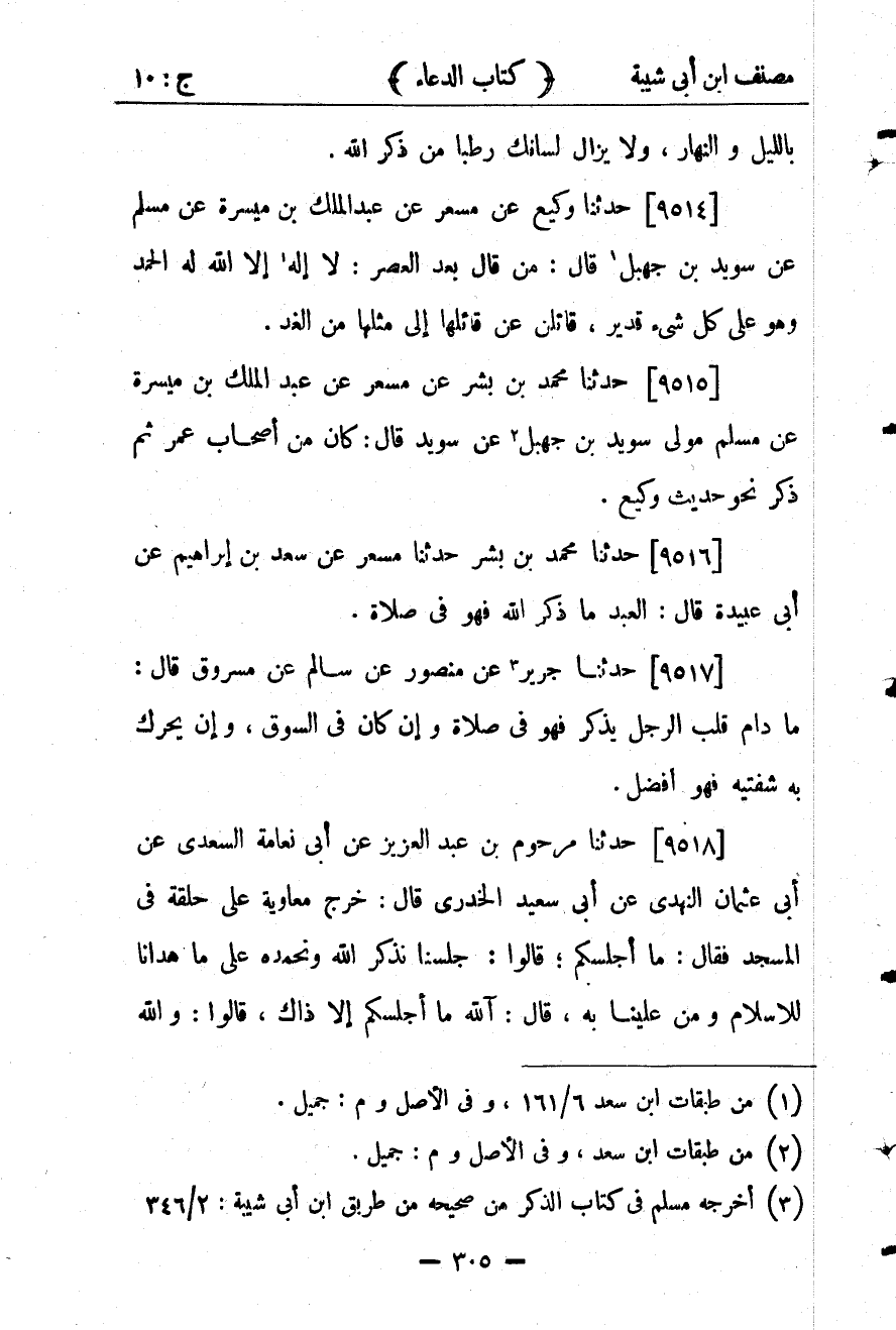 30079- حَدَّثَنَا مُحَمَّدُ بْنُ بِشْرٍ ، عَن مِسْعَرٍ ، عَنْ عَبْدِ الْمَلِكِ بْنِ مَيْسَرَةَ ، عَن مُسْلِمٍ مَوْلَى سُوَيْد بْنِ جُهَيْلٍ ، عَن سُوَيْد ، قَالَ : كَانَ مِنْ أَصْحَابِ عُمَرَ ، ثُمَّ ذَكَرَ نَحْوَ حَدِيثِ وَكِيعٍ.