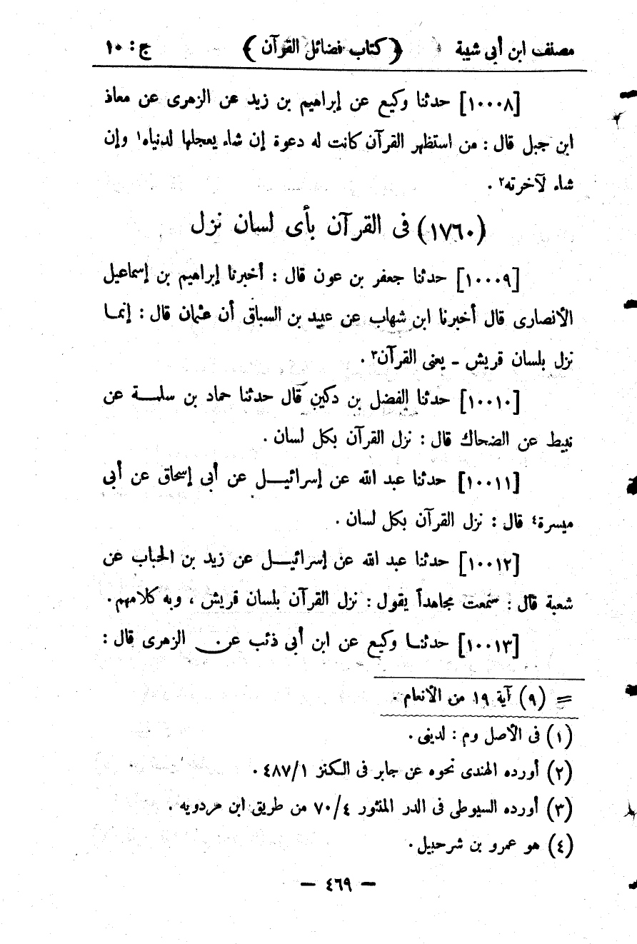 30582- حَدَّثَنَا الْفَضْلُ بْنُ دُكَيْنٍ ، قَالَ : حدَّثَنَا سَلَمَة بْن نُبَيْطٍ ، عَنِ الضَّحَّاكِ ، قَالَ : نَزَلَ الْقُرْآنُ بِكُلِّ لِسَانٍ.