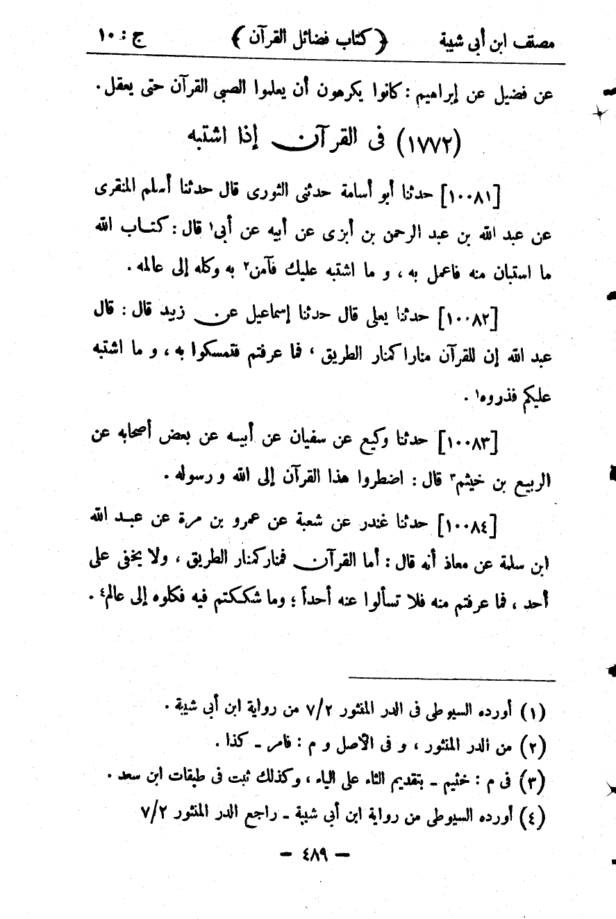 كتاب مصنف ابن أبي شيبة ط السلفية بالهند (اسم الجزء: 10)
