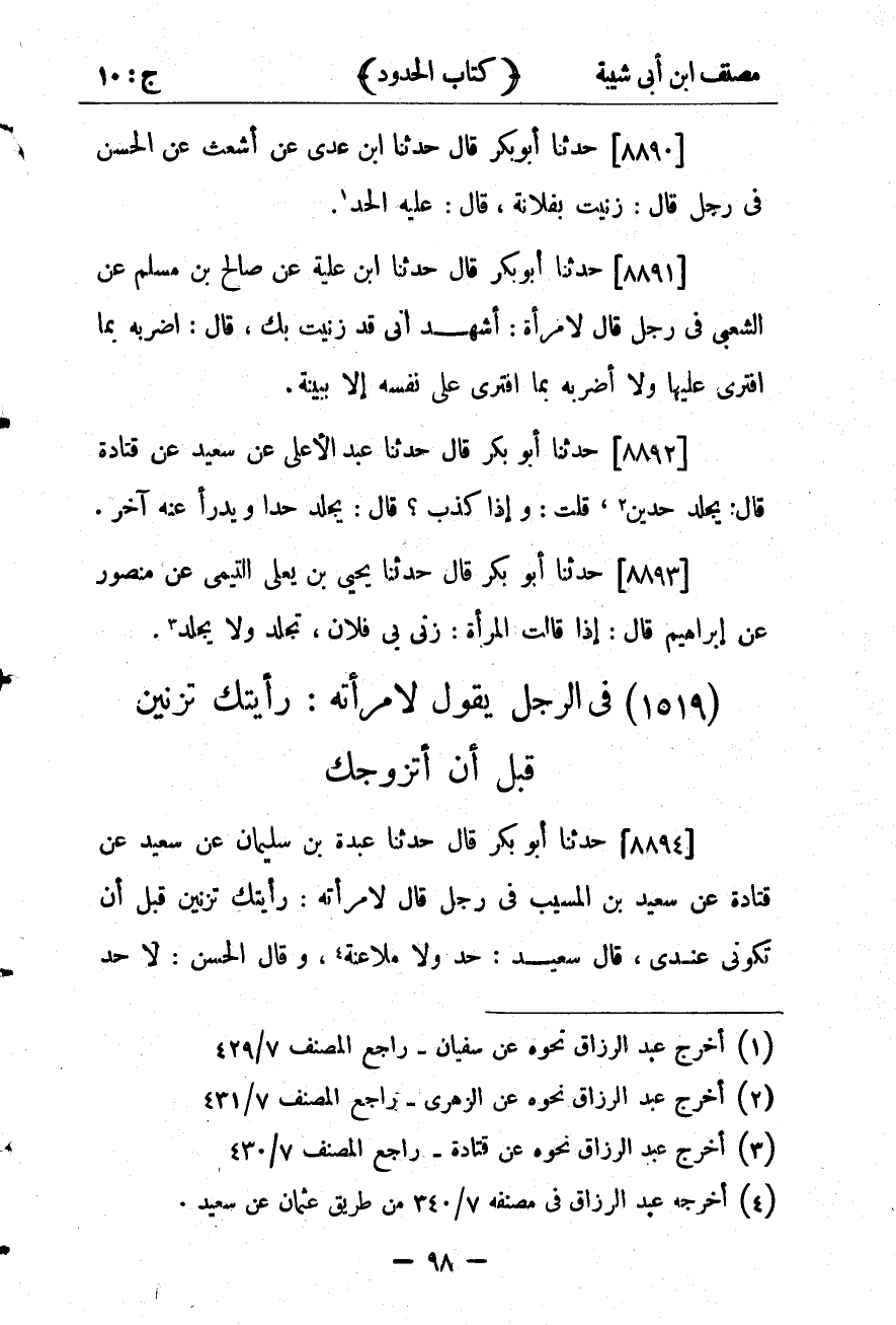 كتاب مصنف ابن أبي شيبة ط السلفية بالهند (اسم الجزء: 10)