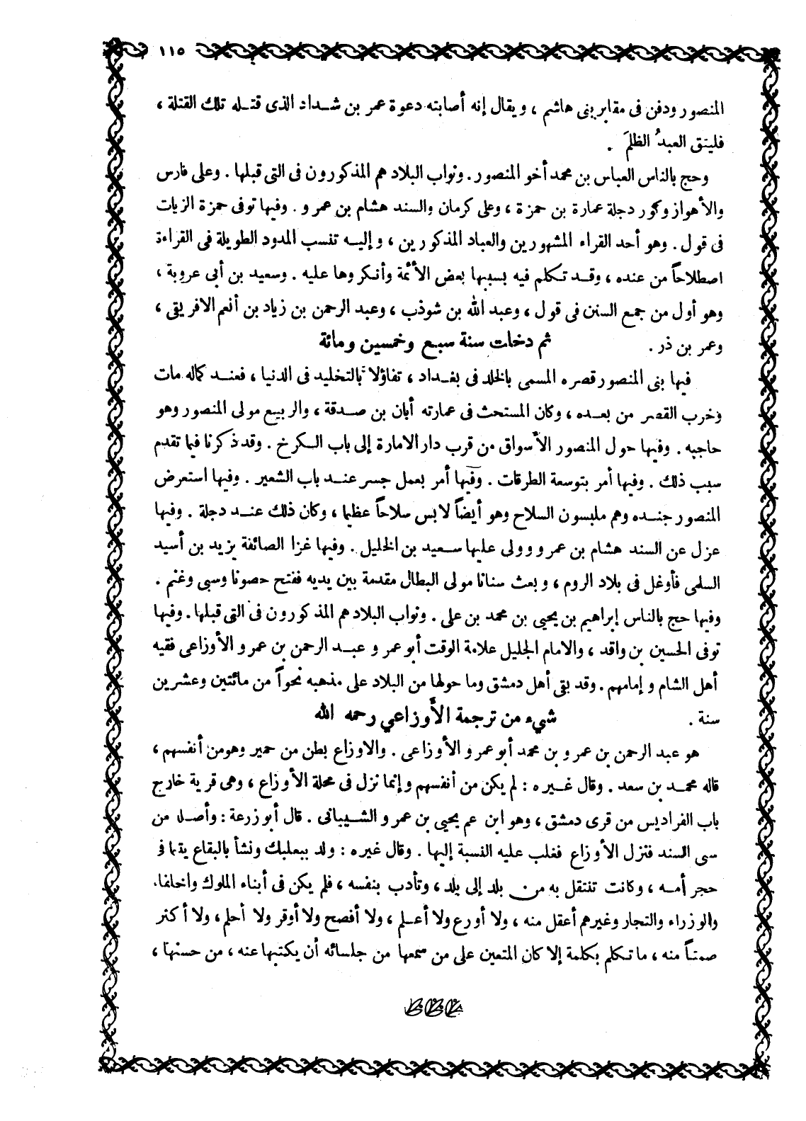 وَهَذَا ذِكْرُ شَيْءٍ مِنْ تَرْجَمَةِ الْأَوْزَاعِيِّ رَحِمَهُ اللَّهُ