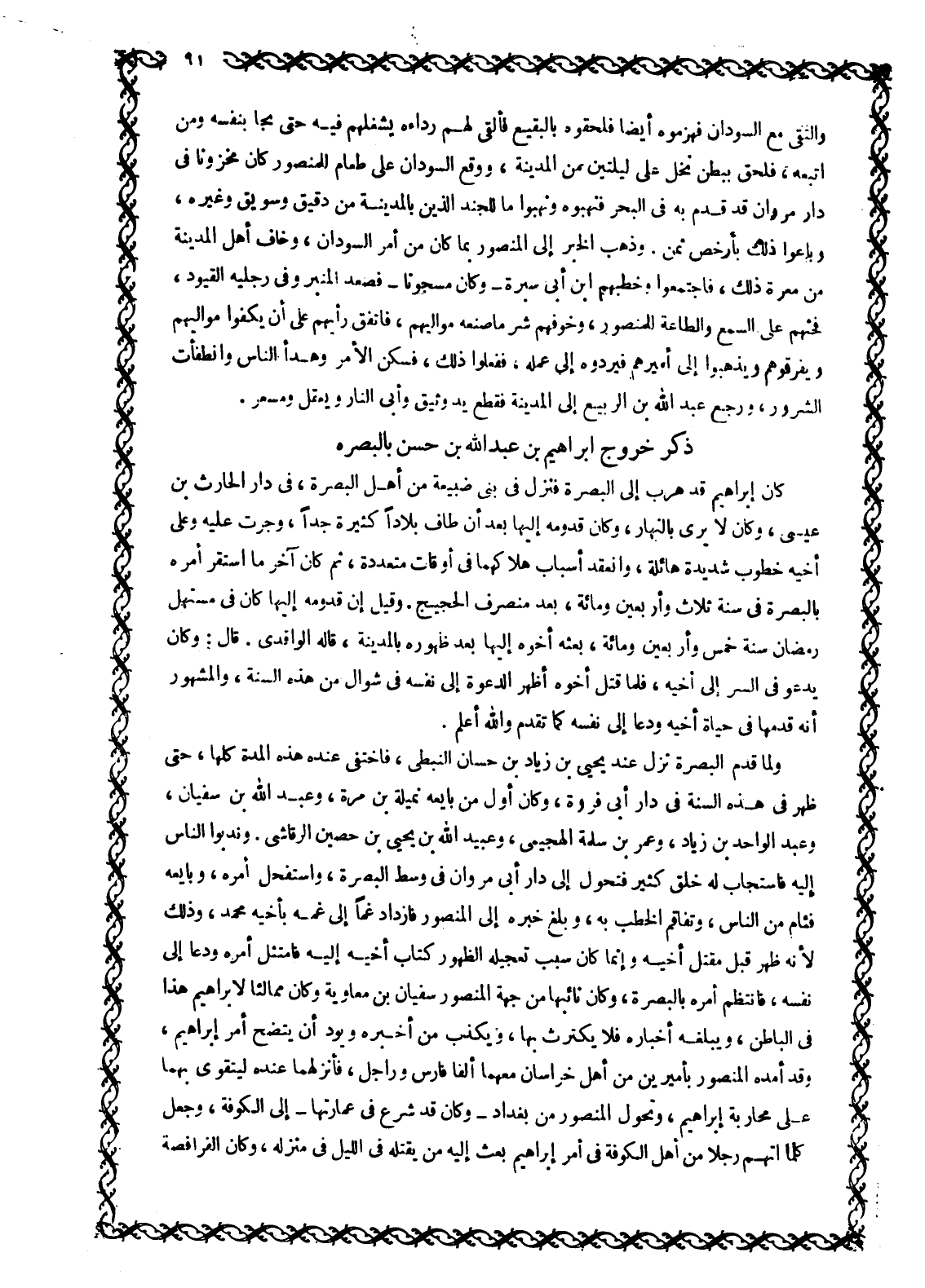 ذِكْرُ خروج إبراهيم بن عبد الله بن حسن بالبصرة وكيفية مقتله