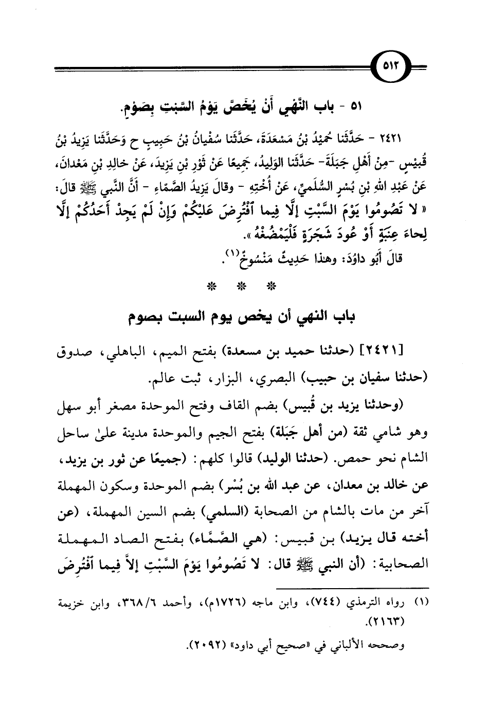 [2421] (حدثنا حميد بن مسعدة) بفتح الميم، الباهلي، صدوق (حدثنا سفيان بن حبيب) البصري، البزار، ثبت عالم.