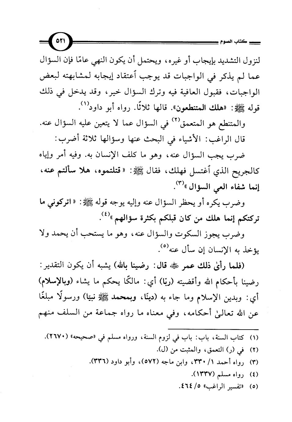 وضرب يكره أو يحظر السؤال عنه وإليه يوجه قوله - صلى الله عليه وسلم -: "اتركوني ما تركتكم إنما هلك من كان قبلكم بكثرة سؤالهم" (¬4).