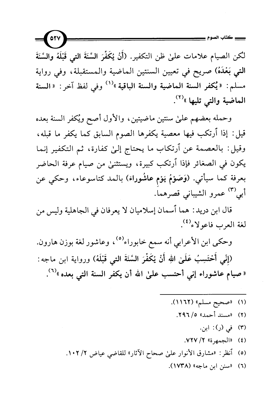 (إِنّي أَحْتَسِبُ عَلَى اللهِ أَنْ يُكَفِّرَ السَّنَةَ التي قَبْلَهُ) ورواية ابن ماجه: "صيام عاشوراء إني أحتسب على الله أن يكفر السنة التي بعده" (¬6).
