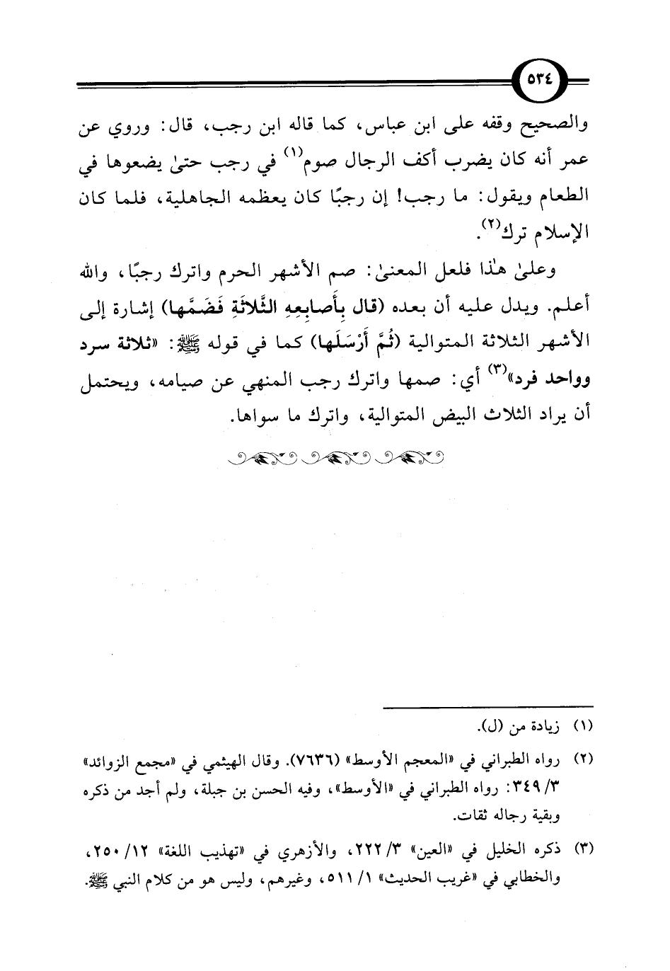 والصحيح وقفه على ابن عباس، كما قاله ابن رجب، قال: وروي عن عمر أنَّه كان يضرب أكف الرجال صوم (¬1) في رجب حتى يضعوها في الطعام ويقول: ما رجب! إن رجبًا كان يعظمه الجاهلية، فلما كان الإِسلام ترك (¬2).