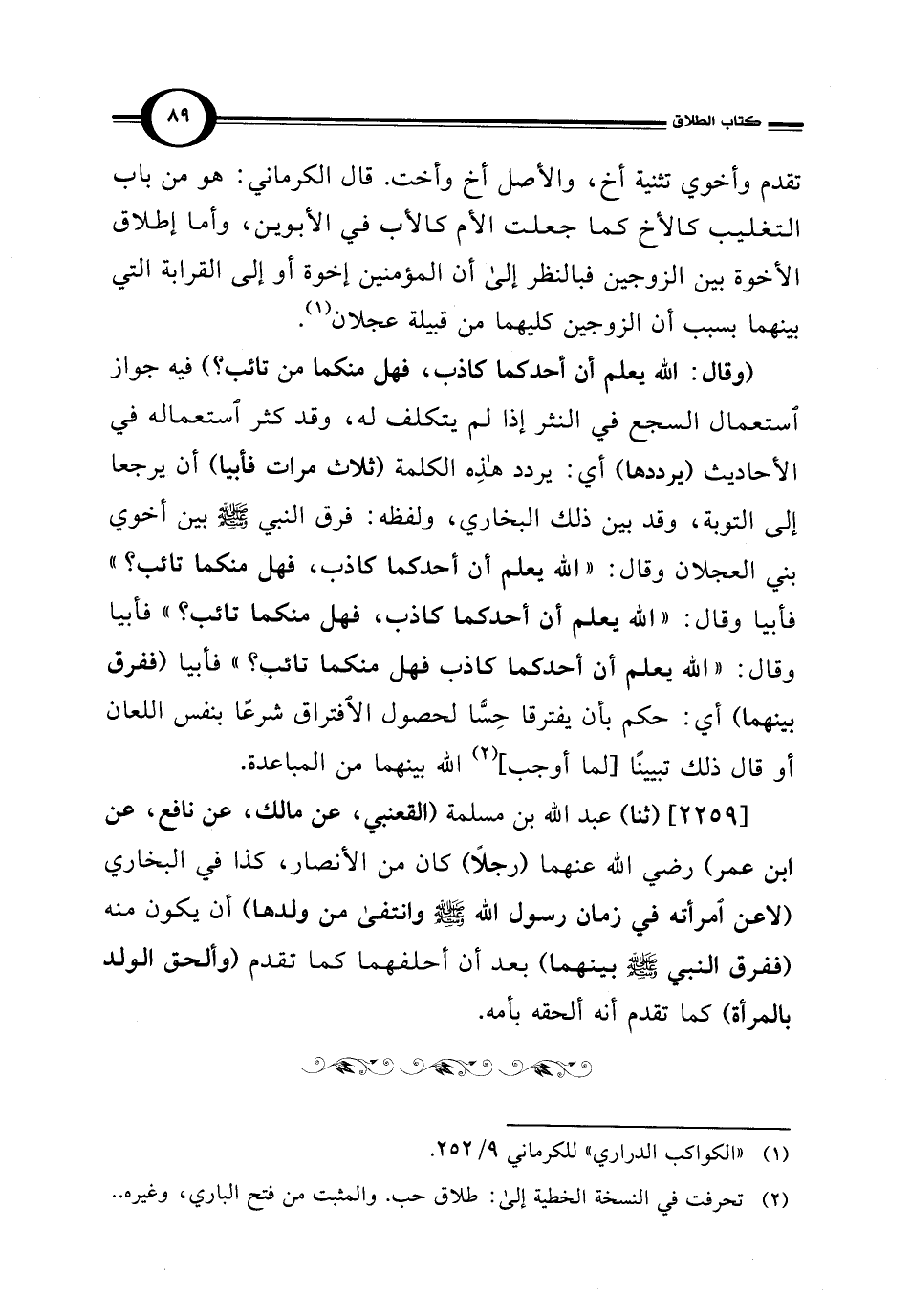 (¬1) "الكواكب الدراري" للكرماني 9/ 252.
