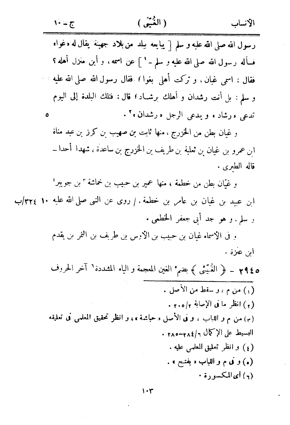 فقال: اسمى غيان، وتركت أهلي بغوا، فقال رسول الله صلى الله عليه وسلم: بل أنت رشدان وأهلك برشاد، قال: فتلك البلدة إلى اليوم تدعى «رشاد» ويدعى الرجل «رشدان» [2] .
