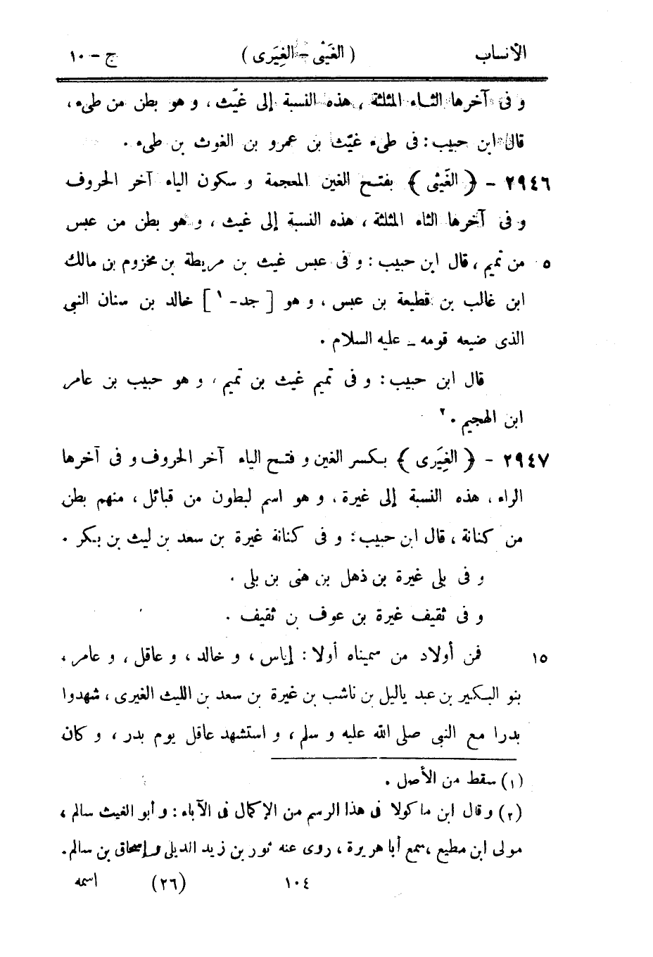 وفي آخرها الثاء المثلثة، هذه النسبة إلى غيّث، وهو بطن من طيِّئ، قال ابن حبيب: في طيِّئ غيّث بن عمرو بن الغوث بن طيِّئ.