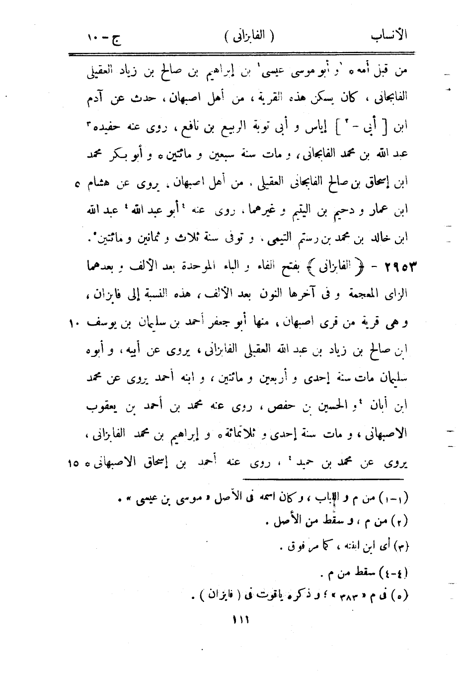 بفتح الفاء والباء الموحدة بعد الألف وبعدهما الزاى المعجمة وفي آخرها النون بعد الألف، هذه النسبة إلى فابزان، وهي قرية من قرى أصبهان، منها أبو جعفر أحمد بن سليمان بن يوسف ابن صالح بن زياد بن عبد الله العقيلي الفابزانى، يروى عن أبيه، وأبوه سليمان مات سنة إحدى وأربعين ومائتين، وابنه أحمد يروى عن محمد ابن أبان [4] والحسين بن حفص، روى عنه محمد بن أحمد بن يعقوب الأصبهاني، ومات سنة إحدى وثلاثمائة وإبراهيم بن محمد الفابزانى، يروى عن محمد بن حميد [4] ، روى عنه أحمد بن إسحاق الأصبهاني [5]