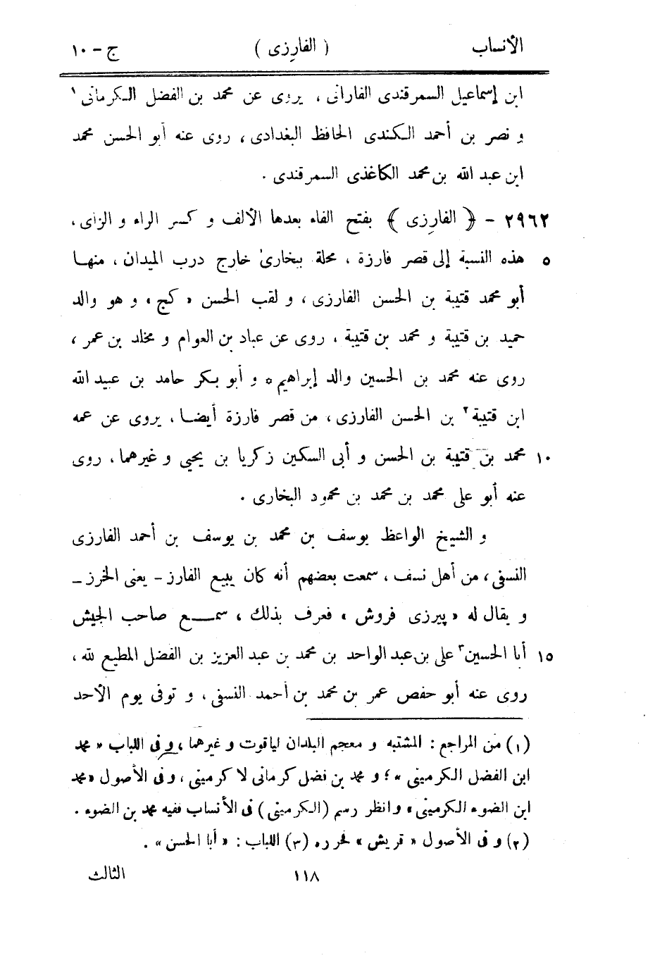 [1] من المراجع: المشتبه ومعجم البلدان لياقوت وغيرهما، وفي اللباب «محمد ابن الفضل الكرميني» ، ومحمد بن فضل كرمانى لا كرمينى، وفي الأصول «محمد ابن الضوء الكرميني» وانظر رسم (الكرميني) في الأنساب ففيه محمد بن الضوء.