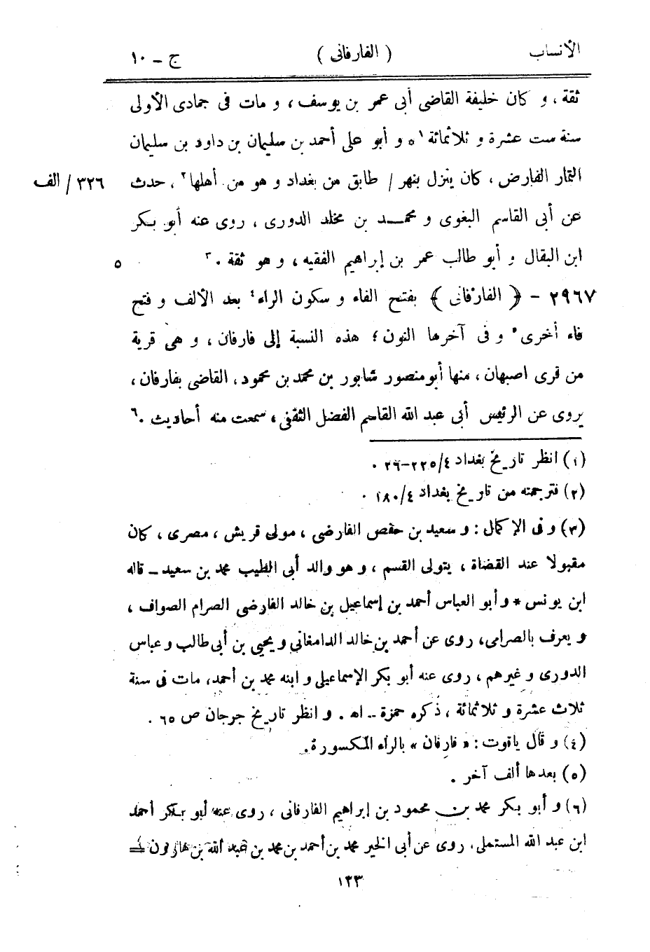 بفتح الفاء وسكون الراء [4] بعد الألف وفتح فاء أخرى [5] وفي آخرها النون، هذه النسبة إلى فارفان، وهي قرية من قرى أصبهان، منها أبو منصور شابور بن محمد بن محمود، القاضي بفارفان، يروى عن الرئيس أبى عبد الله القاسم الفضل الثقفي، سمعت منه أحاديث. [6]