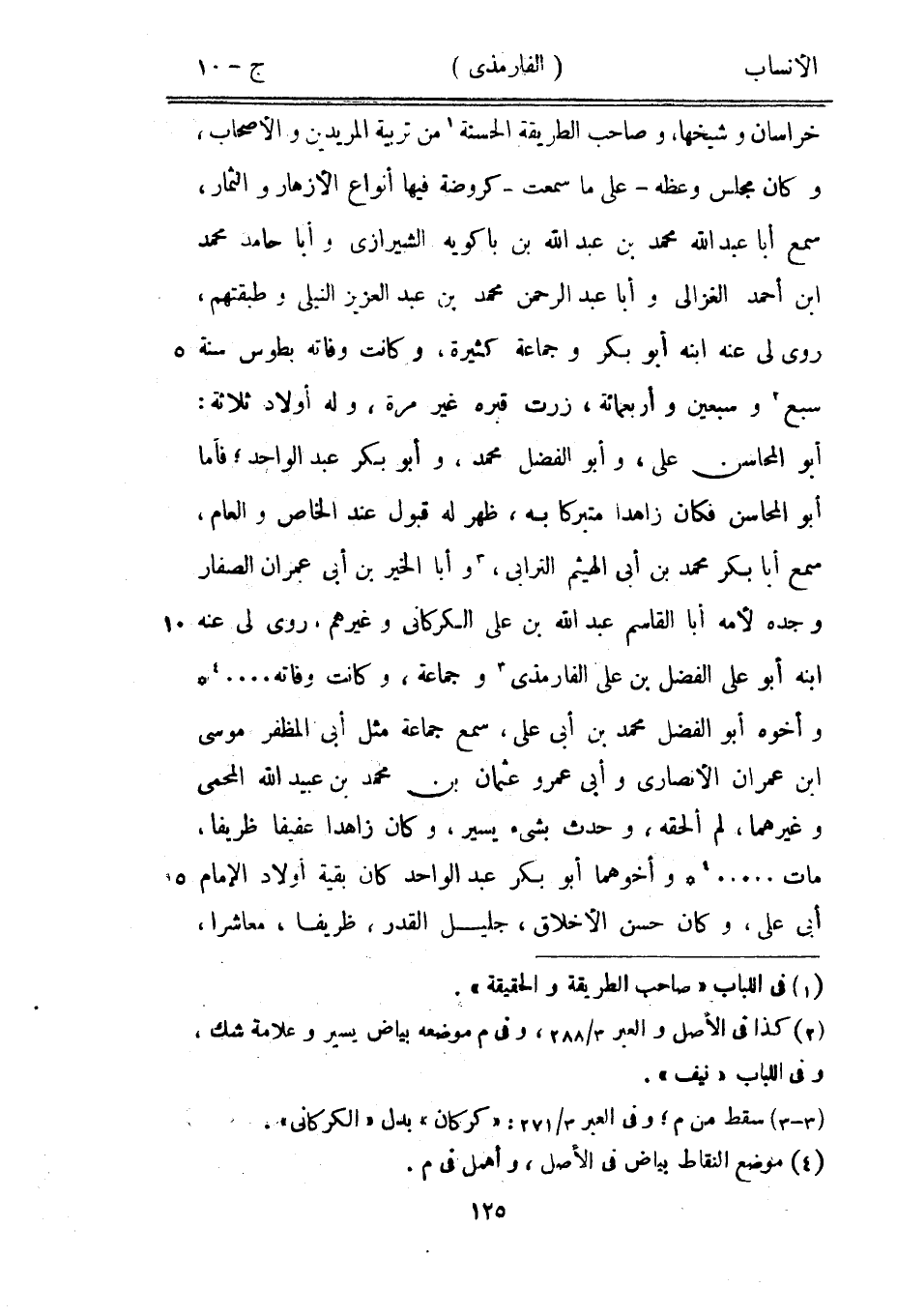 خراسان وشيخها، وصاحب الطريقة الحسنة [1] من تربية المريدين والأصحاب، وكان مجلس وعظه- على ما سمعت- كروضة فيها أنواع الأزهار والثمار، سمع أبا عبد الله محمد بن عبد الله بن باكويه الشيرازي وأبا حامد محمد ابن أحمد الغزالي وأبا عبد الرحمن محمد بن عبد العزيز النيلي وطبقتهم، روى لي عنه ابنه أبو بكر وجماعة كثيرة، وكانت وفاته بطوس سنة سبع [2] وسبعين وأربعمائة، زرت قبره غير مرة، وله أولاد ثلاثة:
