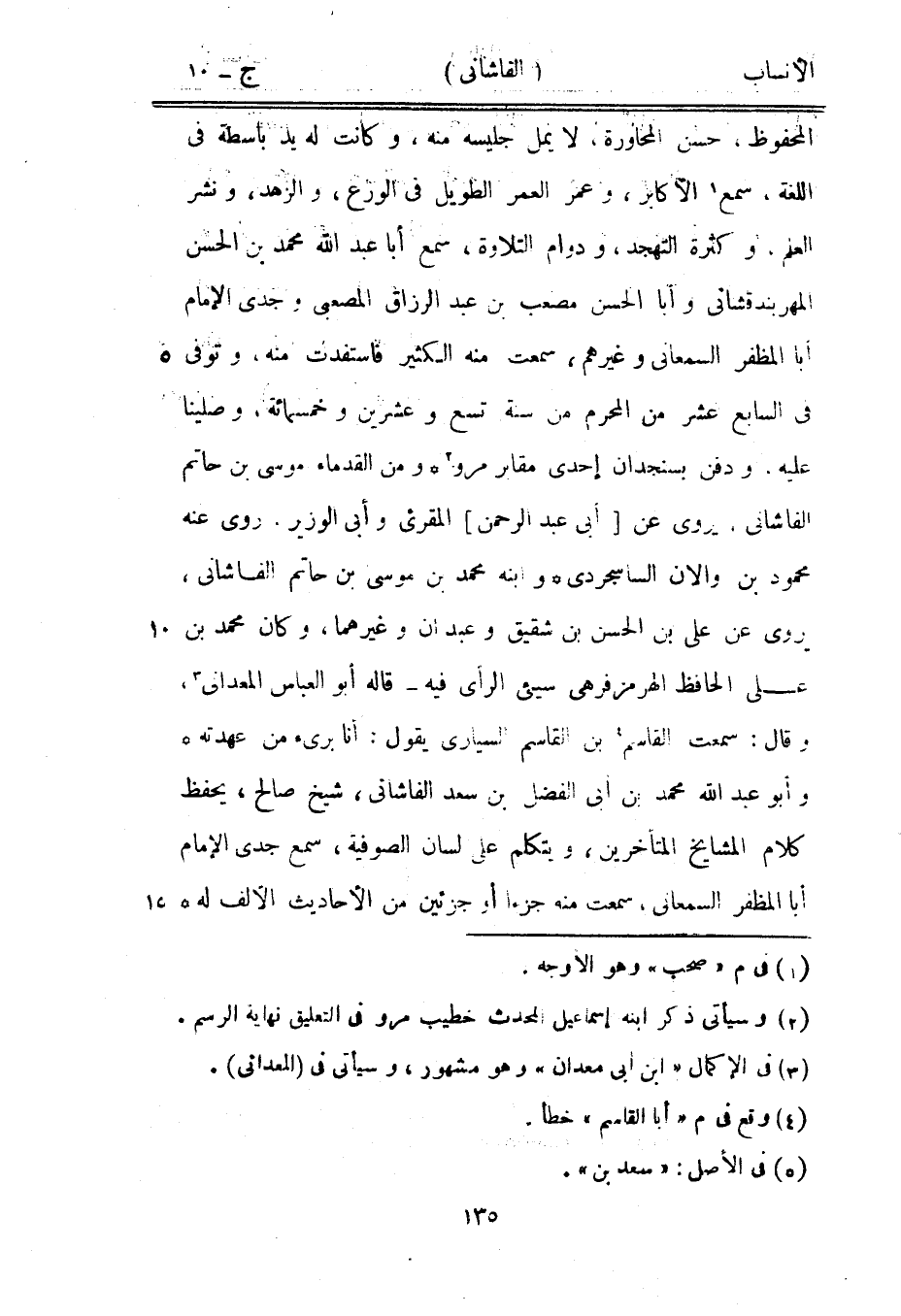 المحفوظ، حسن المحاورة، لا يمل جليسه منه، وكانت له يد باسطة في اللغة، سمع [1] الأكابر، وعمر العمر الطويل في الورع، والزهد، ونشر العلم، وكثرة التهجد، ودوام التلاوة، سمع أبا عبد الله محمد بن الحسن المهربندقشانى وأبا الحسن مصعب بن عبد الرزاق المصعبي وجدي الإمام أبا المظفر السمعاني وغيرهم، سمعت منه الكثير فاستفدت منه، وتوفى في السابع عشر من المحرم من سنة تسع وعشرين وخمسمائة، وصلينا عليه، ودفن بسنجدان إحدى مقابر مرو [2] ومن القدماء موسى بن حاتم الفاشانى، يروى عن [أبى عبد الرحمن] المقرئ وأبى الوزير، روى عنه محمود بن والان الساسجردى وابنه محمد بن موسى بن حاتم الفاشانى، يروى عن على بن الحسن بن شقيق وعبدان وغيرهما، وكان محمد بن على الحافظ الهرمزفرهي سيء الرأى فيه- قاله أبو العباس المعداني [3] ، وقال: سمعت القاسم [4] بن القاسم السياري يقول: أنا بريء من عهدته وأبو عبد الله محمد بن أبى الفضل بن سعد [5] الفاشانى، شيخ صالح، يحفظ كلام المشايخ المتأخرين، ويتكلم على لسان الصوفية، سمع جدي الإمام أبا المظفر السمعاني، سمعت منه جزءا أو جزءين من الأحاديث الألف له