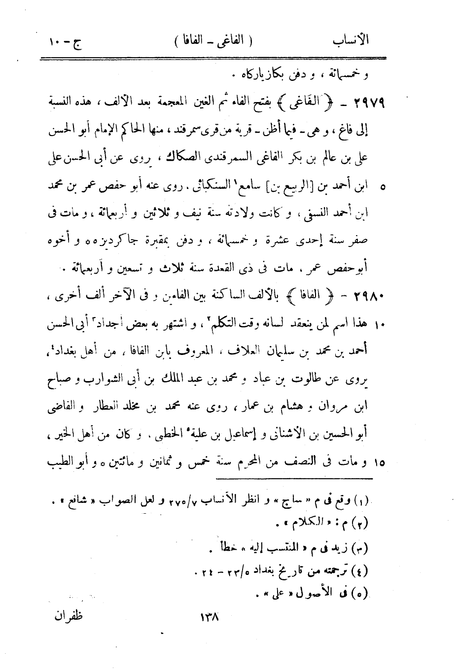[1] وقع في م «ساج» وانظر الأنساب 7/ 275 ولعل الصواب «شافع» .