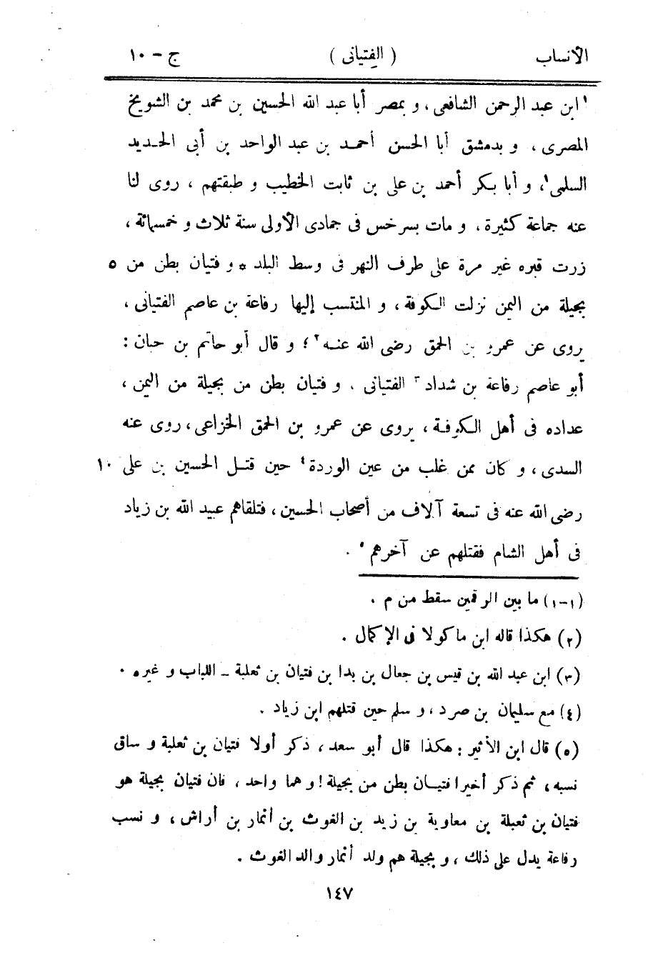 [5] قال ابن الأثير: هكذا قال أبو سعد، ذكر أولا فتيان بن ثعلبة وساق نسبه، ثم ذكر أخيرا فتيان بطن من بجيلة! وهما واحد، فان فتيان بجيلة هو فتيان بن ثعلبة بن معاوية بن زيد بن الغوث بن أنمار بن أراش، ونسب رفاعة يدل على ذلك، وبجيلة هم ولد أنمار والد الغوث.