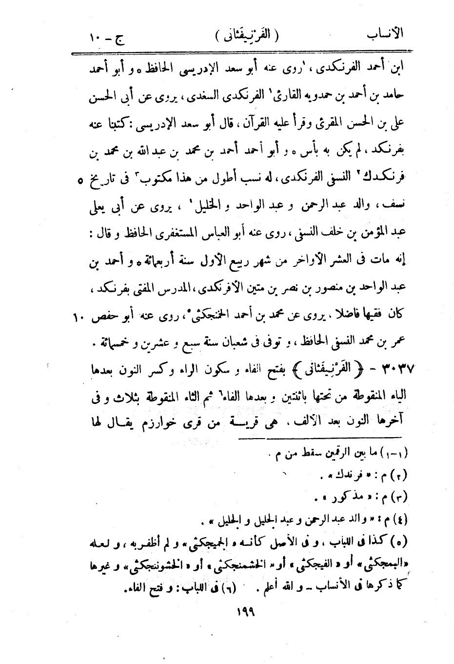 ابن أحمد الفرنكدى، [1] روى عنه أبو سعد الإدريسي الحافظ وأبو أحمد حامد بن أحمد بن حمدويه القارئ [1] الفرنكدى السغدى، يروى عن أبى الحسن على بن الحسن المقرئ وقرأ عليه القرآن، قال أبو سعد الإدريسي: كتبنا عنه بفرنكد، لم يكن به بأس وأبو أحمد أحمد بن محمد بن عبد الله بن محمد بن فرنكدك [2] النسفي الفرنكدى، له نسب أطول من هذا مكتوب [3] في تاريخ نسف، والد عبد الرحمن وعبد الواحد والخليل [4] ، يروى عن أبى يعلى عبد المؤمن بن خلف النسفي، روى عنه أبو العباس المستغفري الحافظ وقال: