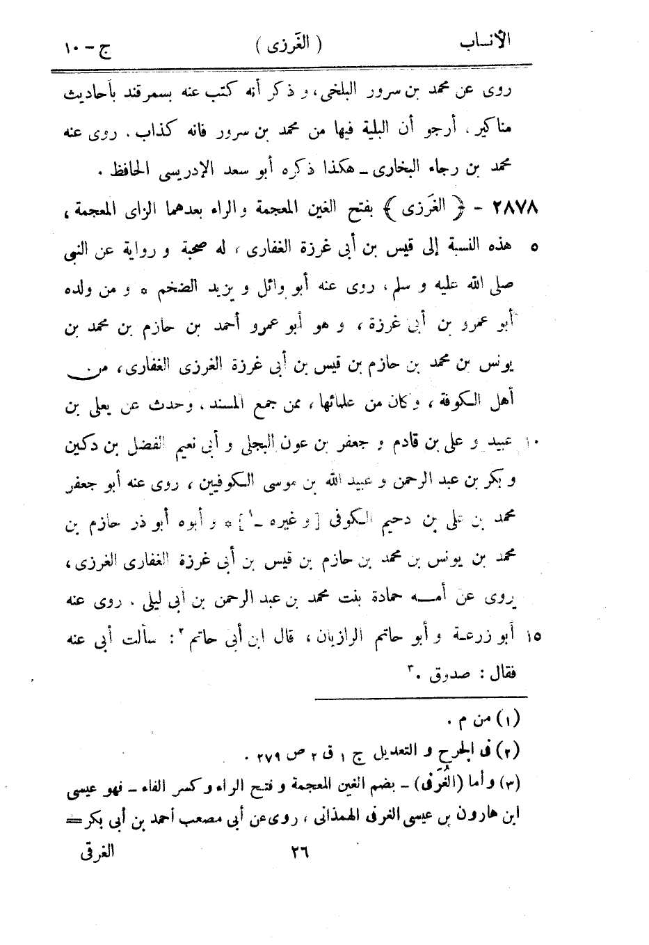 [3] وأما (الغرفى) - بضم الغين المعجمة وفتح الراء وكسر الفاء- فهو عيسى ابن هارون بن عيسى الغرفى الهمذانيّ، روى عن أبى مصعب أحمد بن أبى بكر