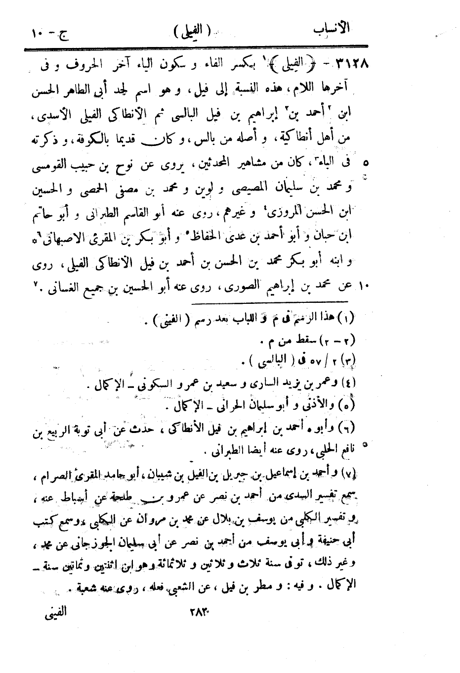 [1] بكسر الفاء وسكون الياء آخر الحروف وفي آخرها اللام، هذه النسبة إلى فيل، وهو اسم لجد أبى الطاهر الحسن ابن [2] أحمد بن [2] إبراهيم بن فيل البالسي ثم الأنطاكي الفيلى الأسدي، من أهل أنطاكية، وأصله من بالس، وكان قديما بالكوفة، وذكرته في الباء [3] ، كان من مشاهير المحدثين، يروى عن نوح بن حبيب القومسي ومحمد بن سليمان المصيصي ولوين ومحمد بن مصفى الحمصي والحسين ابن الحسن المروزي [4] وغيرهم، روى عنه أبو القاسم الطبراني وأبو حاتم ابن حبان وأبو أحمد بن عدي الحفاظ [5] وأبو بكر بن المقرئ الأصبهاني [6] وابنه أبو بكر محمد بن الحسن بن أحمد بن فيل الأنطاكي الفيلى، روى عن محمد بن إبراهيم الصوري، روى عنه أبو الحسين بن جميع الغساني. [7]